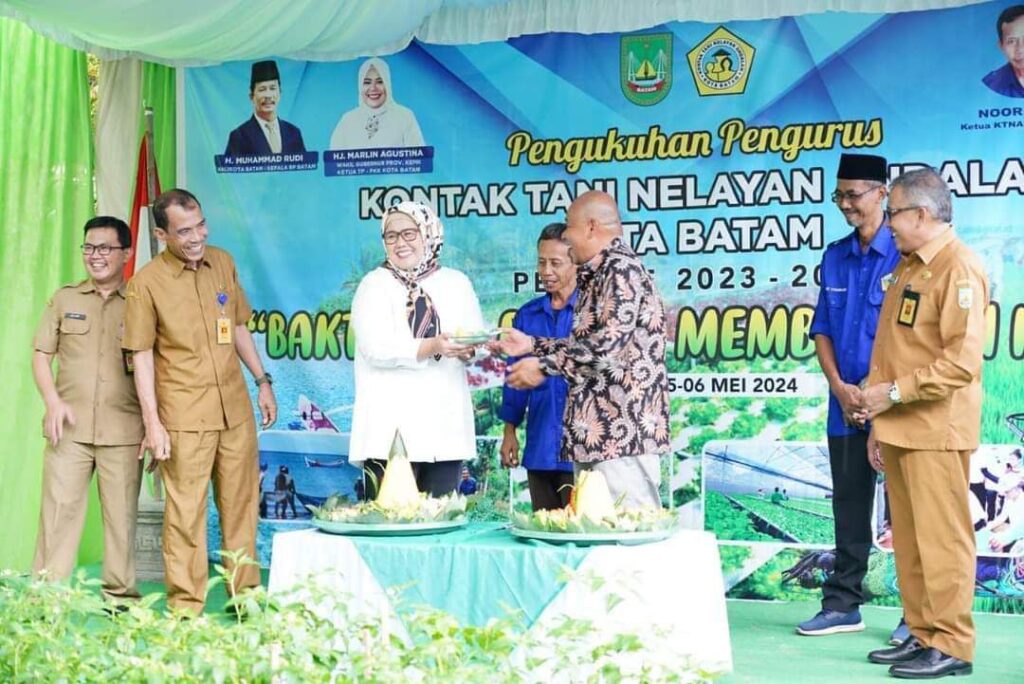 SEITEMIANG, KataBatam- Wakil Gubernur Kepulauan Riau Hj Marlin Agustina, menghadiri pengukuhan pengurus Kontak Tani Nelayan Andalan (KTNA) Kota Batam, Periode 2023-2028, di Tibelat Farm Seitemiang, Sekupang, Senin (6/5/2024).