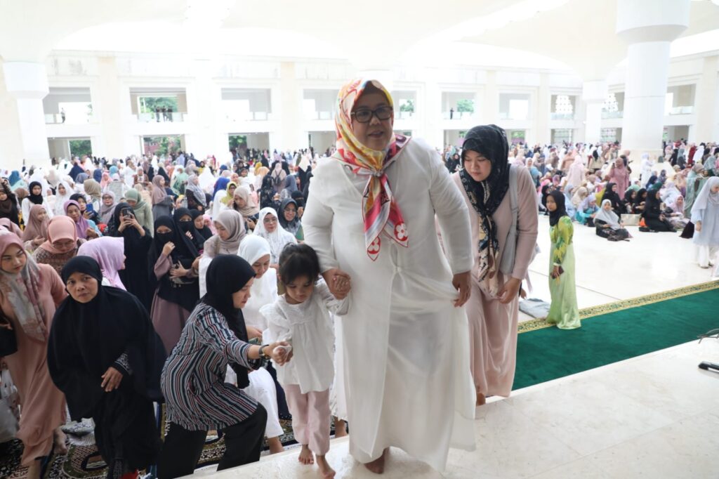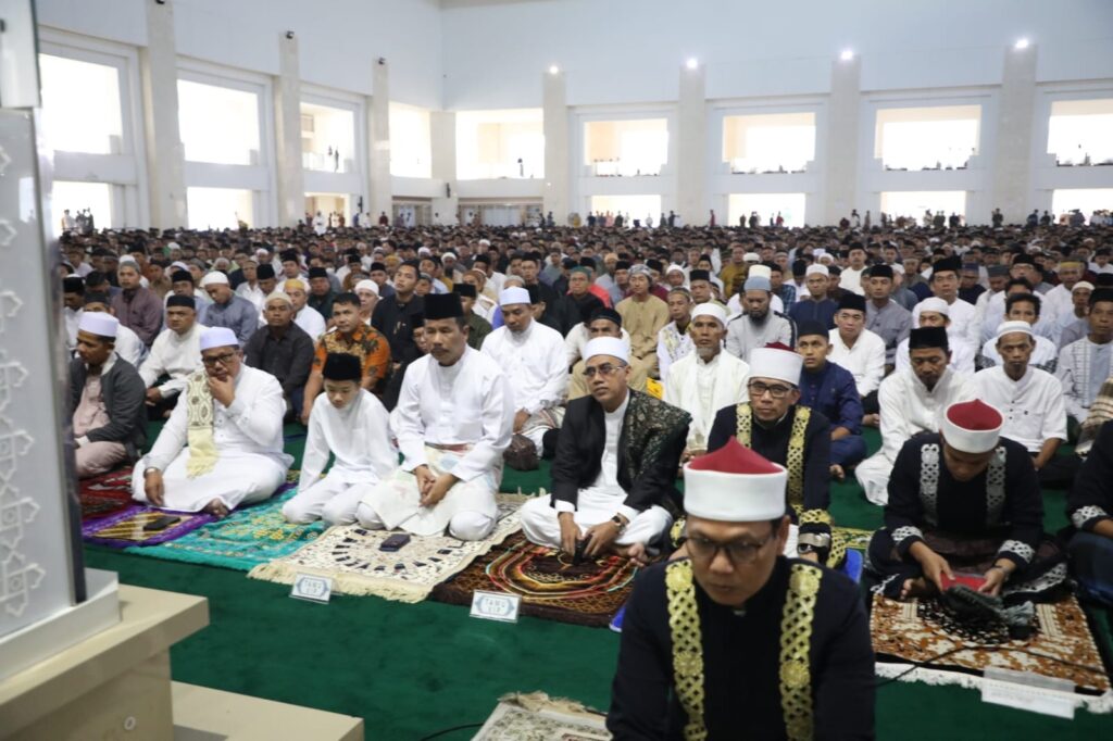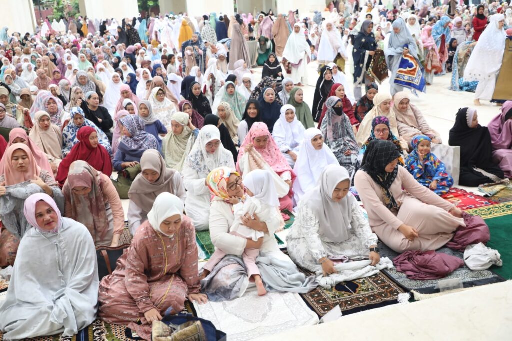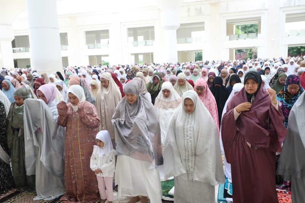 BATUAJI, KataBatam- Wali Kota Batam/Kepala Badan Pengusahaan Batam H Muhammad Rudi (HMR), bersama Wakil Gubernur Kepulauan Riau Hj Marlin Agustina, melaksanakan salat Iduladha di Masjid Sultan Mahmud Riayat Syah, Batuaji, Senin (17/6/2023) pagi.