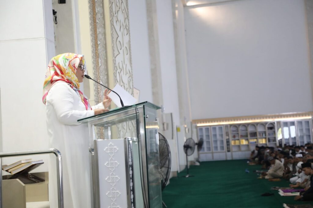 Sebelum salat dimulai, Marlin yang juga Ketua Tim Penggerak Pemberdayaan Kesejahteraan Keluarga (TP-PKK) Kota Batam, didapuk memberikan sambutan.