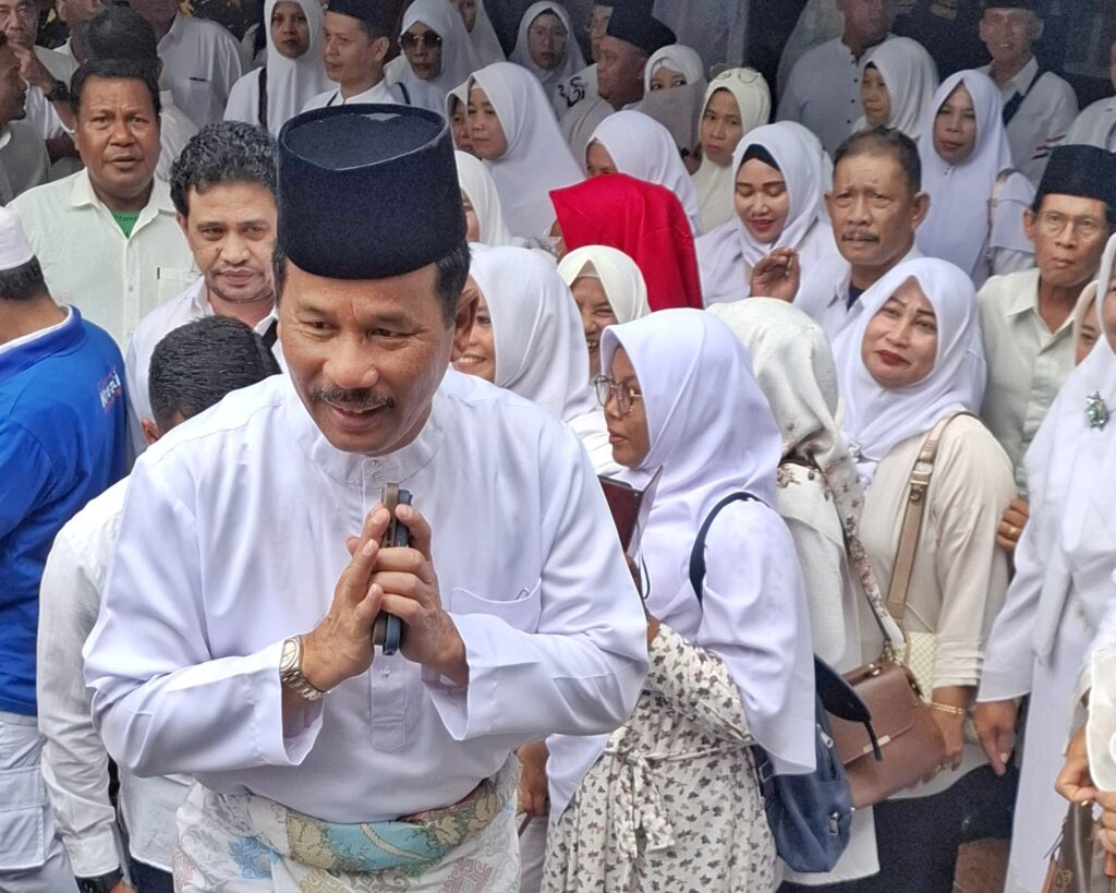 BATAMCENTER , KataBatam- Ribuan orang berjejal, memadati kediaman H Muhammad Rudi (HMR), di Perumahan Rosedale Blok F, Batamcenter, Rabu (28/8/2024) pagi.
