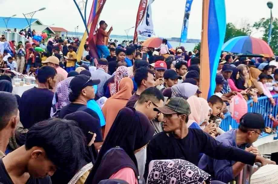 TANJUNGRIAU, KataBatam- Ribuan orang berdesakan menghadiri Pesta Anak Pantai di Pelabuhan Tanjungriau, Kecamatan Sekupang, Minggu (8/9/2024). Kemeriahan bertambah, karena dihadiri langsung Wali Kota Batam H Muhammad Rudi (HMR).