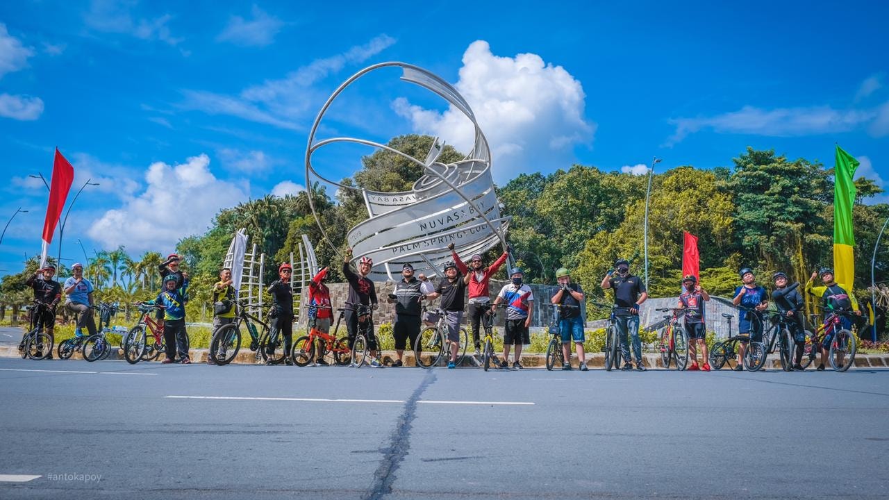 Setelah istirahat sebentar, rombongan lanjut menuju Nuvasa Bay, Palm Spring Golf. Di sini goweser tangguh ini sempat berfoto bersama dengan drone.