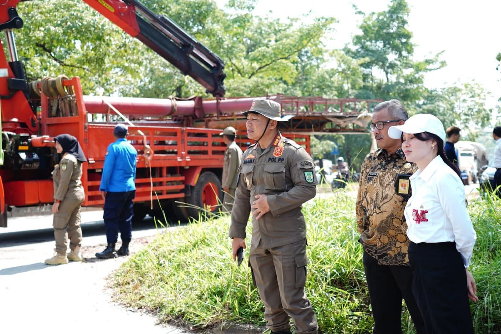 Kerahkan Crane, Li Claudia Tandem Jefridin, Bongkar Reklame Tak Berizin di Batamcenter
