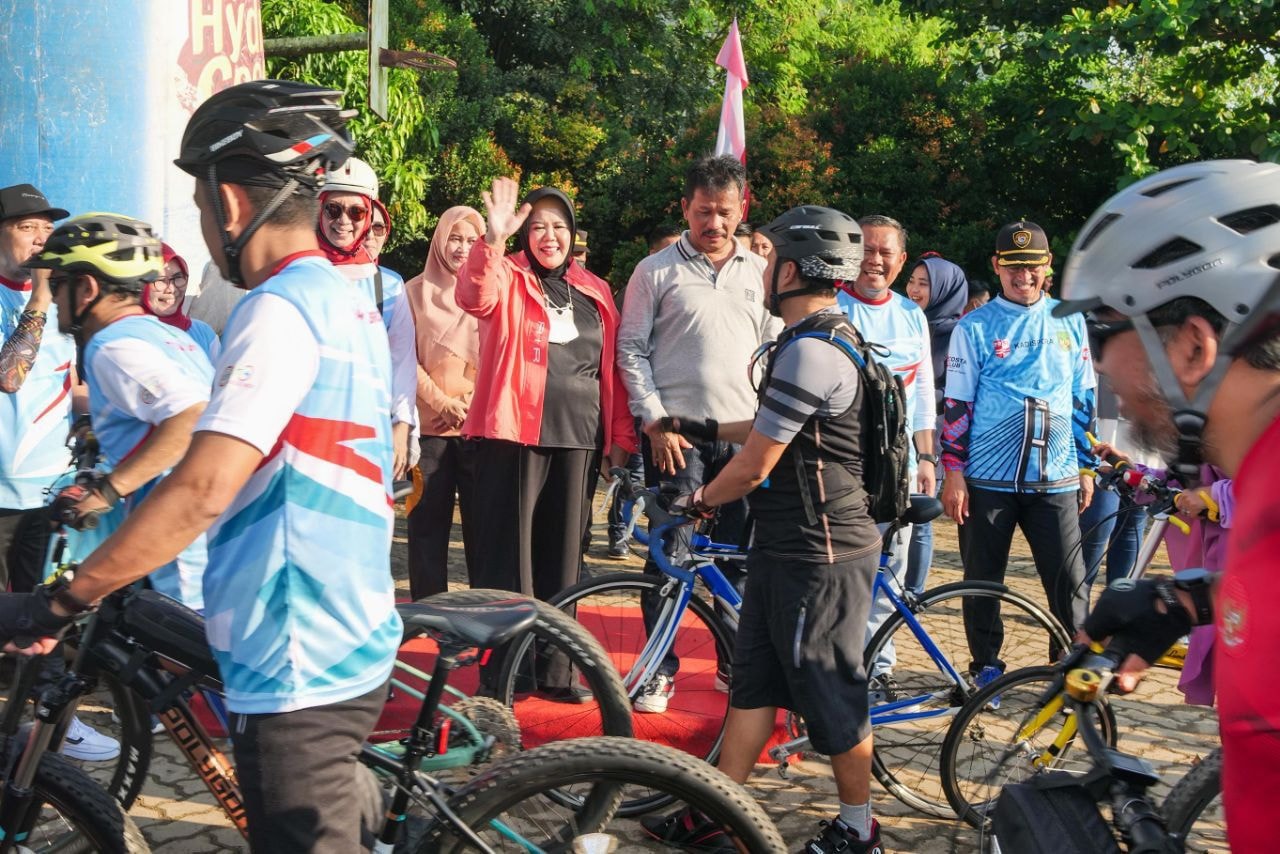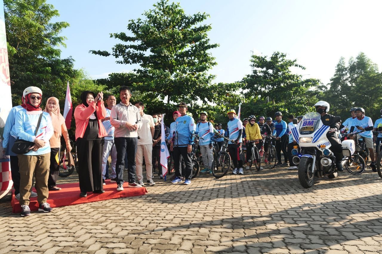 AWALL BROS, KataBatam– Wakil Gubernur Kepulauan Riau Hj Marlin Agustina, bersama Wali Kota Batam H Muhammad Rudi (HMR), membuka Awal Bros Fun Bike Kolaboratif, Minggu (14/8/2022) pagi.