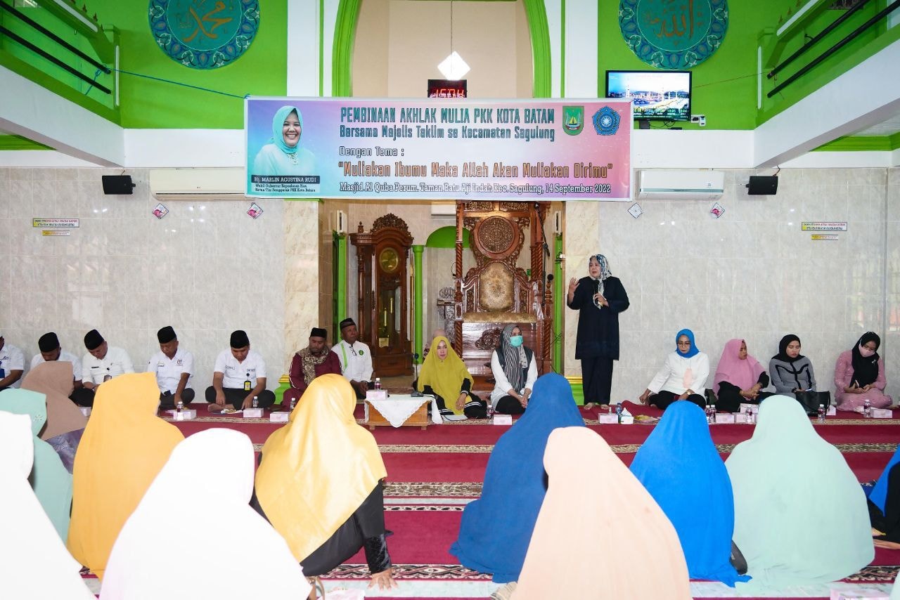 Hingga hari ini, Rabu (14/9/2022), Marlin membuka Pembinaan Akhlak Mulia, TP PKK Kota Batam, bersama Majelis Taklim se-Kecamatan Sagulung, di Masjid Alquba, Perum Taman Batuaji Indah, Sagulung, dengan tema: Muliakan Ibumu, Maka Allah Akan Muliakan Dirimu.