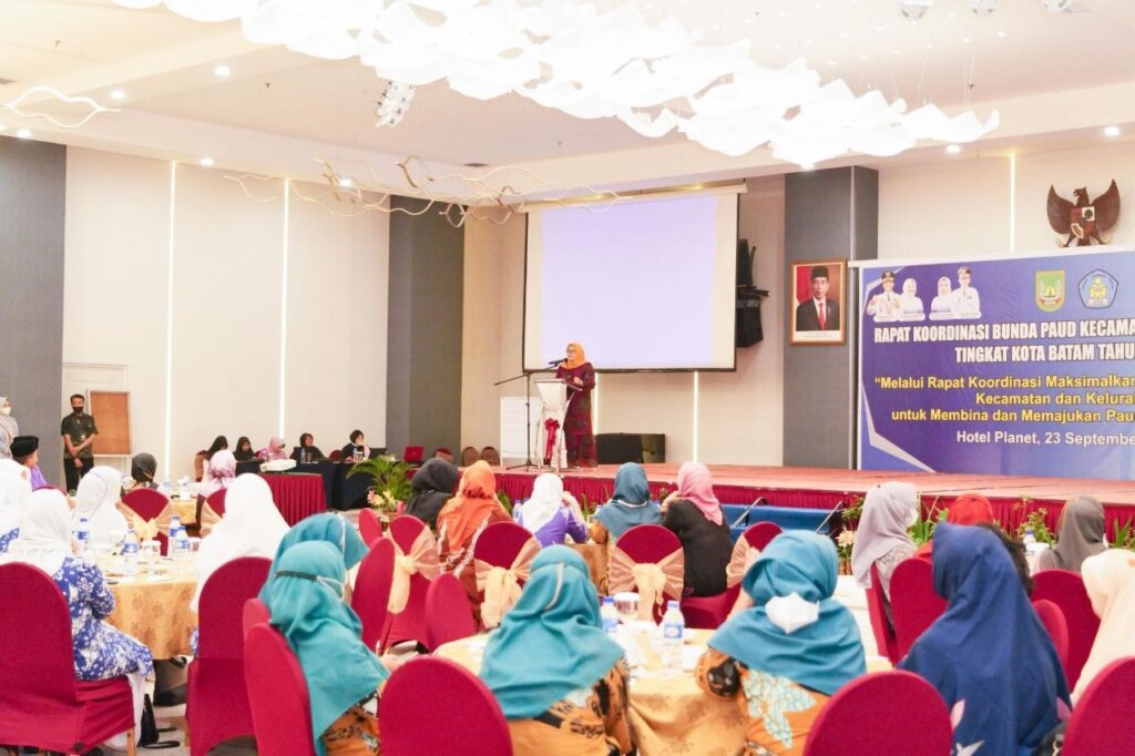 HOTEL PLANET, KataBatam– Wakil Gubernur Kepulauan Riau Hj Marlin Agustina, membuka Workshop Pendidikan Anak Usia Dini (PAUD/OPD Mitra Dinas) dan Rakor Bunda PAUD Kecamatan dan Kelurahan se-Kota Batam, di Hotel Planet Holiday, Jodoh, Kota Batam, Jumat (23/9/2022).