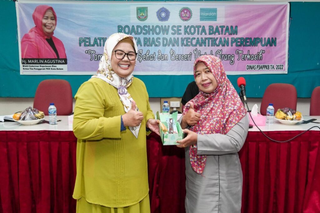 BATAM, KataBatam– Wakil Gubernur Kepulauan Riau Hj Marlin Agustina, membuka Roadshow Pelatihan Tata Rias, dengan tema: Tampil Cantik, Sehat Berseri untuk Orang Terkasih. Acara ini digelar pukul 09.30, di SMKN 1, Tembesikibing, Kelurahan Kibing, Kecamatan Batuaji, Kota Batam, Kamis (22/9/2022).