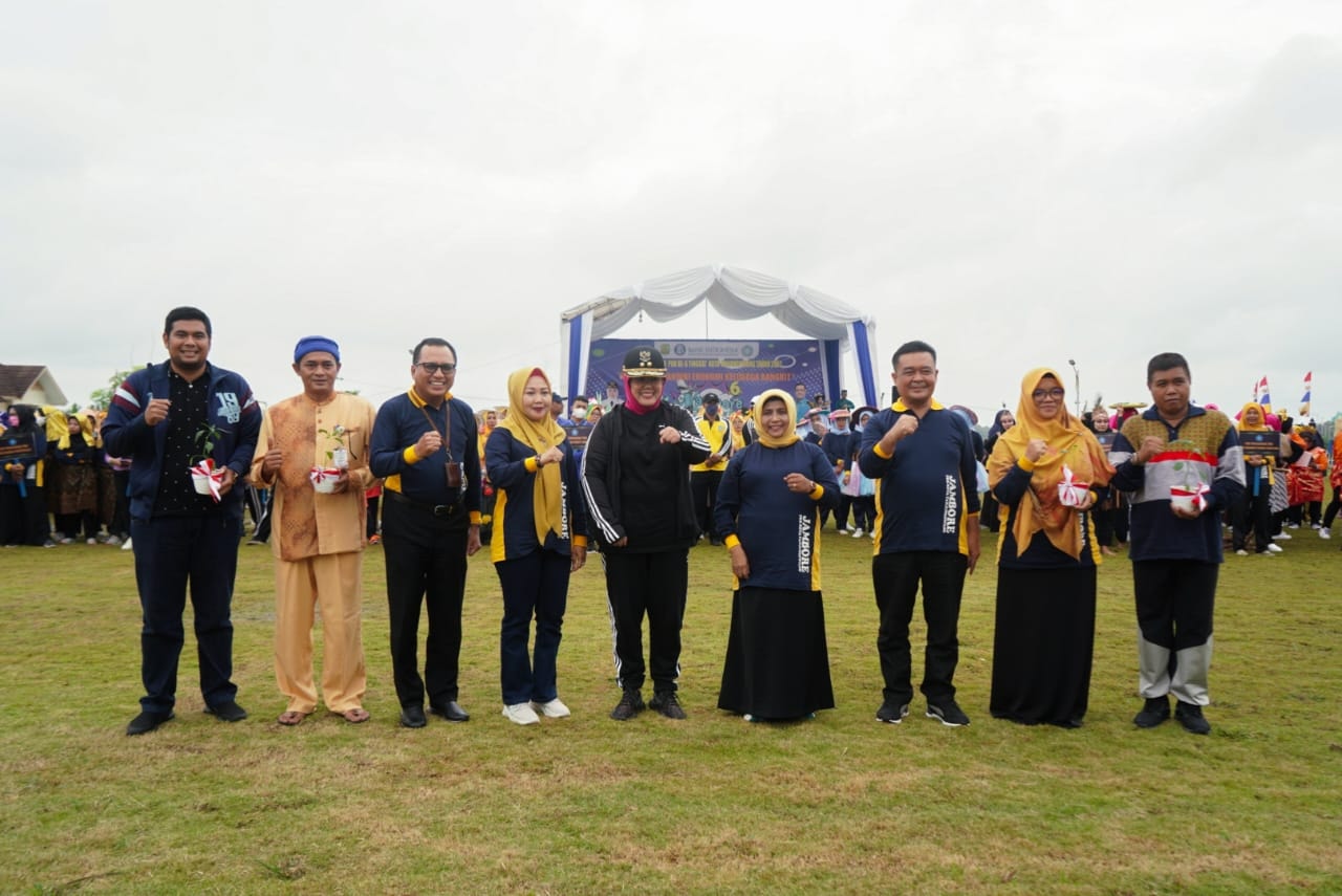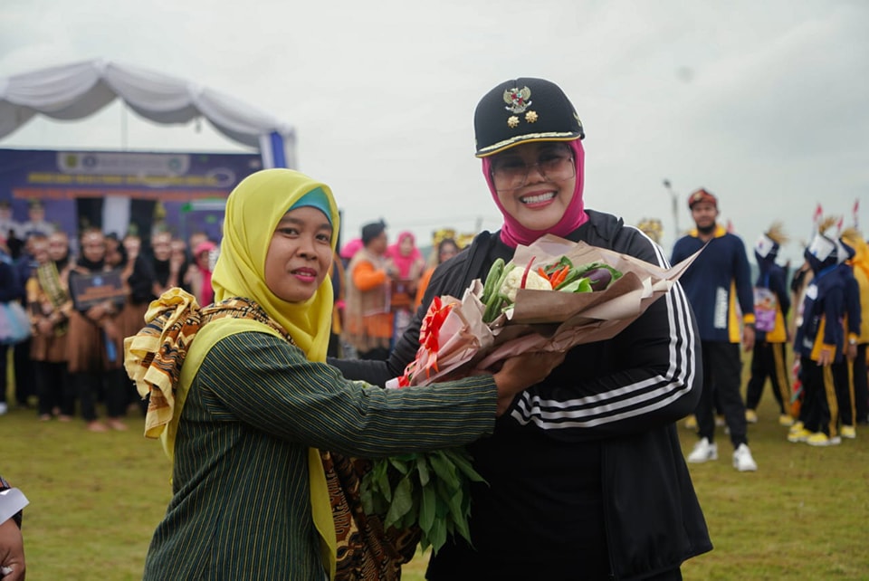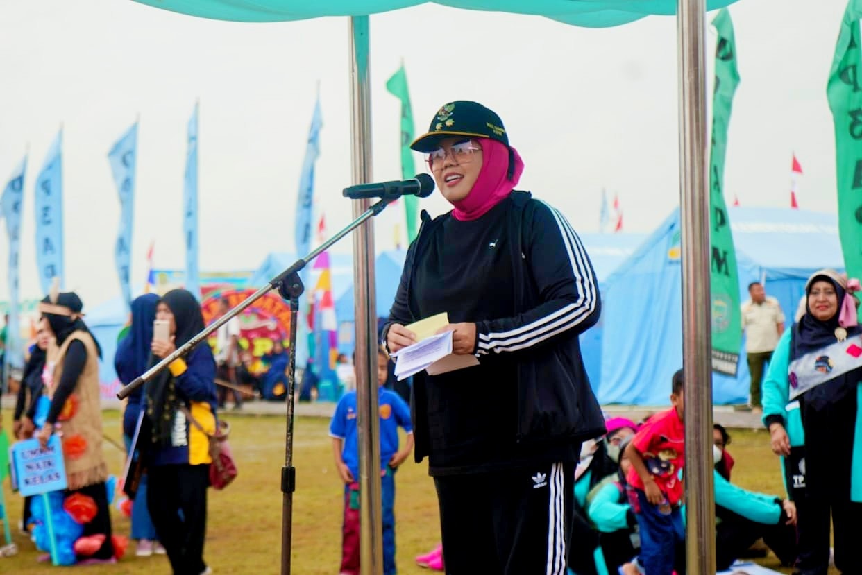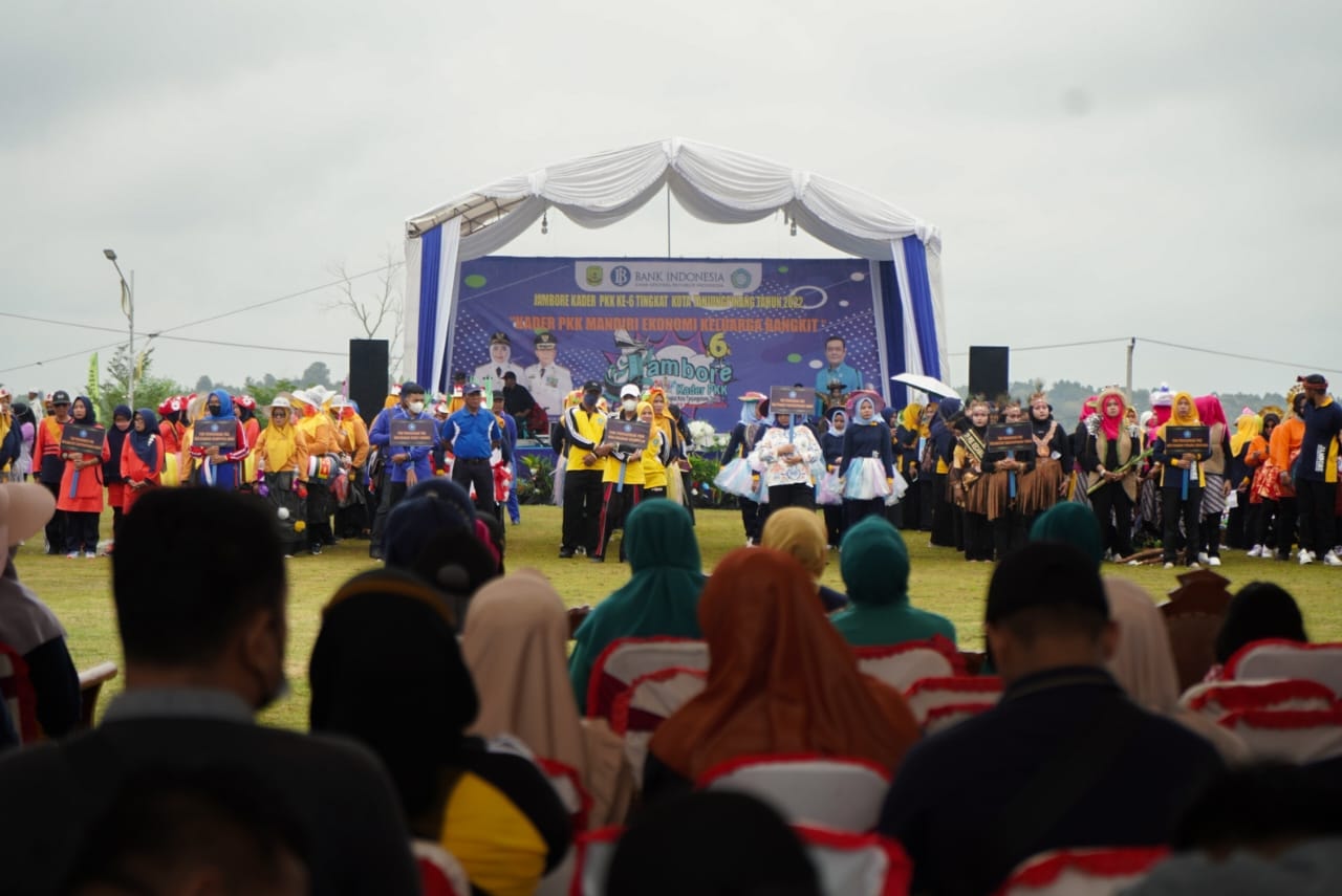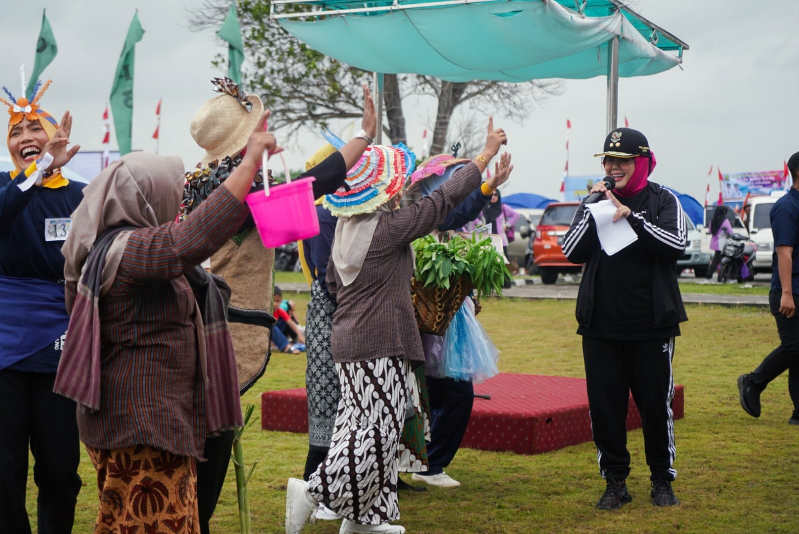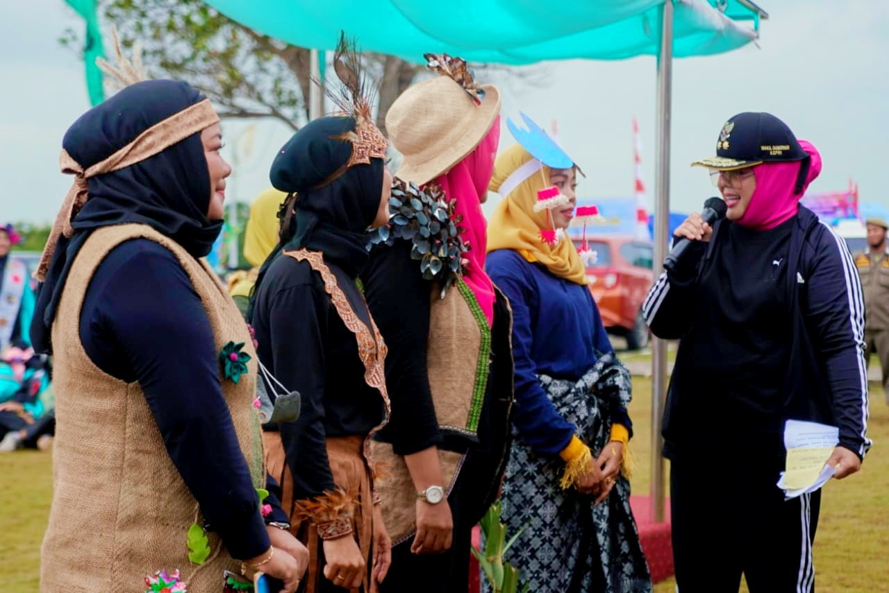 “Kita adalah kader (PKK) yang semangat, kreatif, ceria, dan bangkit membantu ekonomi keluarga. Kita aplikasikan semangat dalam jambore ini, bahwa Kader PKK Mandiri, Ekonomi Keluarga Bangkit,” kata Wagub Marlin, memberi semangat. (ski)