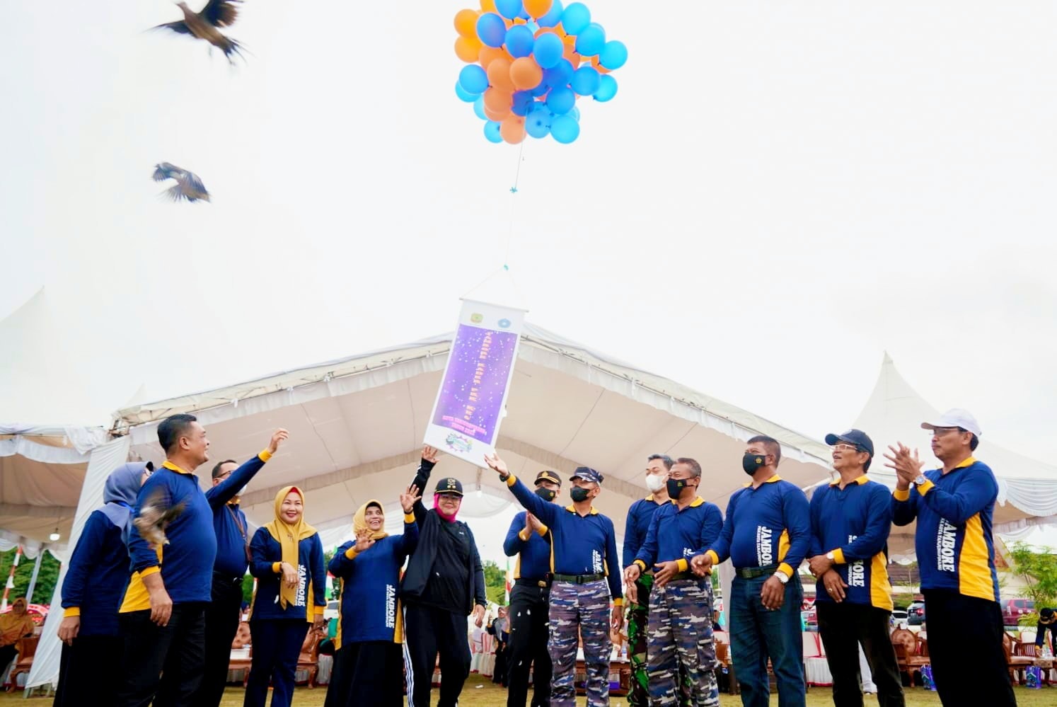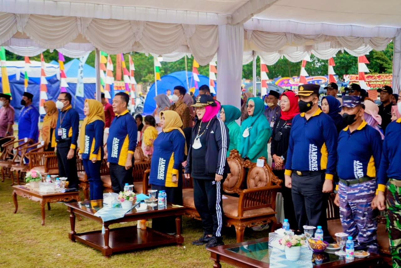 Jambore makin semarak oleh aksi peserta, dan aneka lomba, diiring sambutan ribuan pasang mata warga yang menyaksikannya.