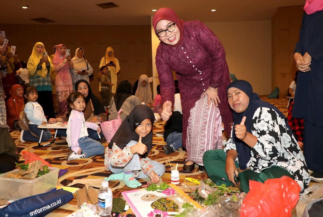 JODOH, KataBatam- Bunda Pendidikan Anak Usia Dini (PAUD) Kota Batam Hj Erlita Sari Amsakar, memberikan apresiasi atas penampilan peserta didik dan tenaga pendidik dalam kegiatan Pekan Olahraga dan Seni (Porseni) PAUD Tingkat Kota Batam Tahun 2025, di DC Mall, Jodoh, Senin (21/04/2025).
