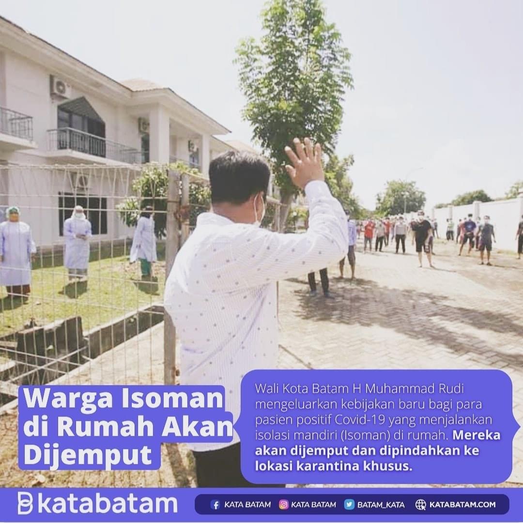 WALI KOTA BATAM H Muhammad Rudi (HMR) mengeluarkan kebijakan baru bagi para pasien positif Covid-19 yang menjalankan isolasi mandiri (isoman) di rumah.