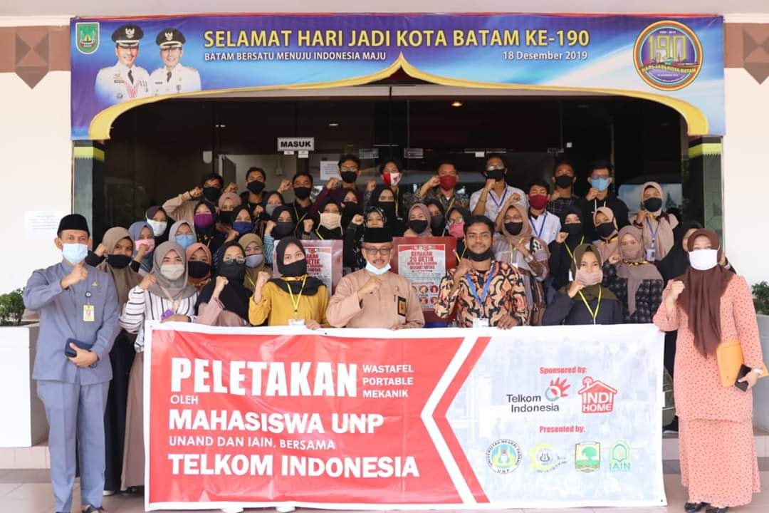 HIMPUNAN Mahasiswa KKN Batam asal Sumatera Barat (Sumbar) menyerahkan dua wastafel portable ke Pemerintah Kota Batam.