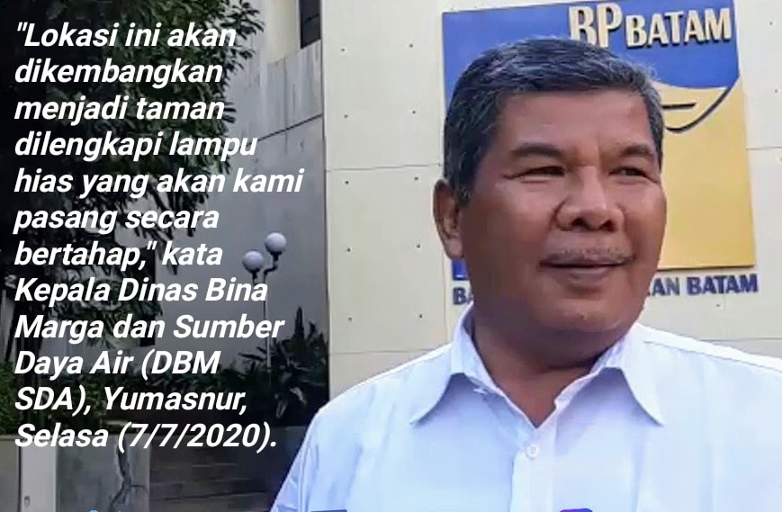 “Lokasi ini akan dikembangkan menjadi taman dilengkapi lampu hias yang akan kami pasang secara bertahap,” kata Kepala Dinas Bina Marga dan Sumber Daya Air (DBM SDA), Yumasnur, Selasa (7/7/2020).