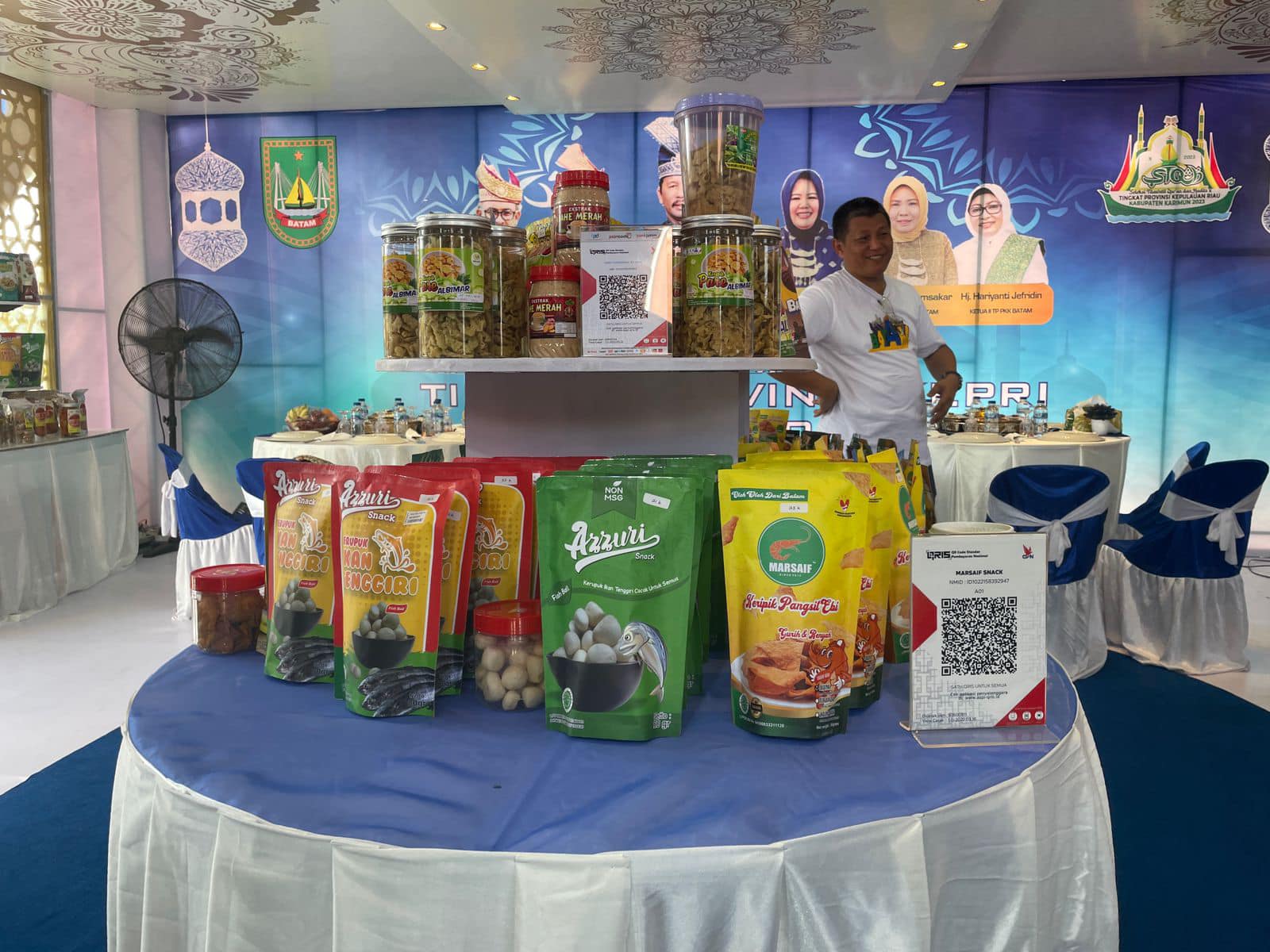 Misalnya ada keripik gonggong, kripik ubi, egg rolls, epok-epok dalam kemasan dan lainnya. Semua produk UMKM tersebut sudah dikemas modern dan memiliki label halal.
