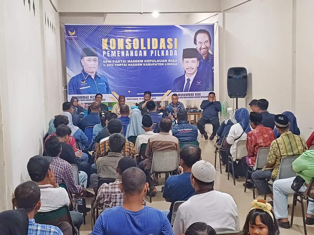 LINGGA, KataBatam- Ketua Dewan Pimpinan Wilayah (DPW) Partai Nasional Demokrat (Nasdem) Kepulauan Riau (Kepri) H Muhammad Rudi (HMR), melakukan konsolidasi dengan Dewan Pimpinan Daerah (DPD) Nasional Demokrat (Nasdem) Kabupaten Lingga, Senin (16/9/2024).