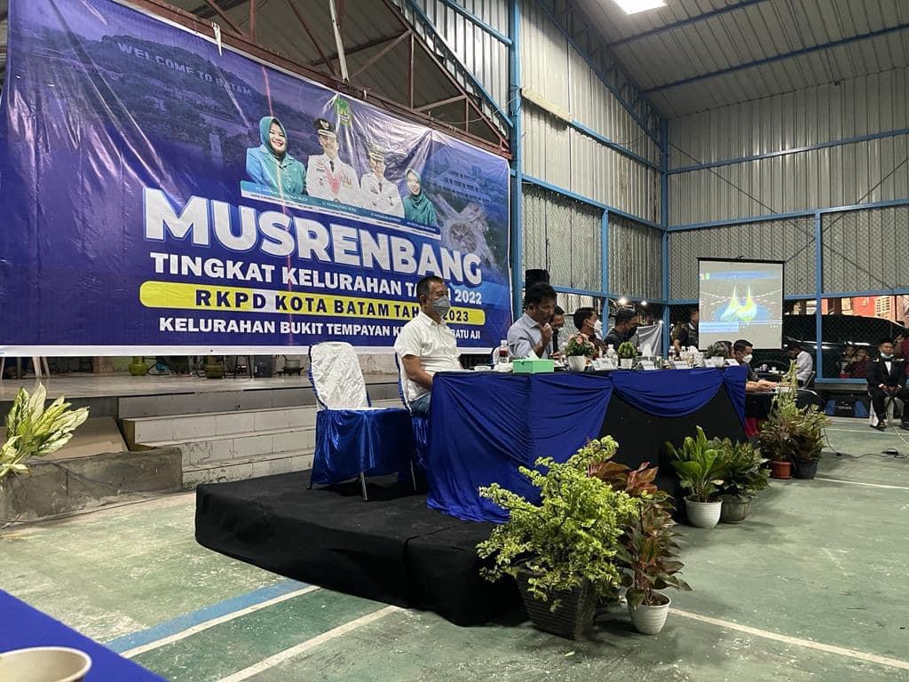 BATUAJI- Wali Kota Batam H Muhammad Rudi (HMR), bersama Wakil Wali Kota Batam H Amsakar Achmad, menghadiri acara Musyawarah Rencana Pembangunan (Musrenbang), Kelurahan Bukit Tempayan, Kecamatan Batuaji, di Fasilitas Umum (fasum) Perumahan Bambu Kuning, Blok C, RW 03, Bukit Tempayan Rabu (19/1/2022).