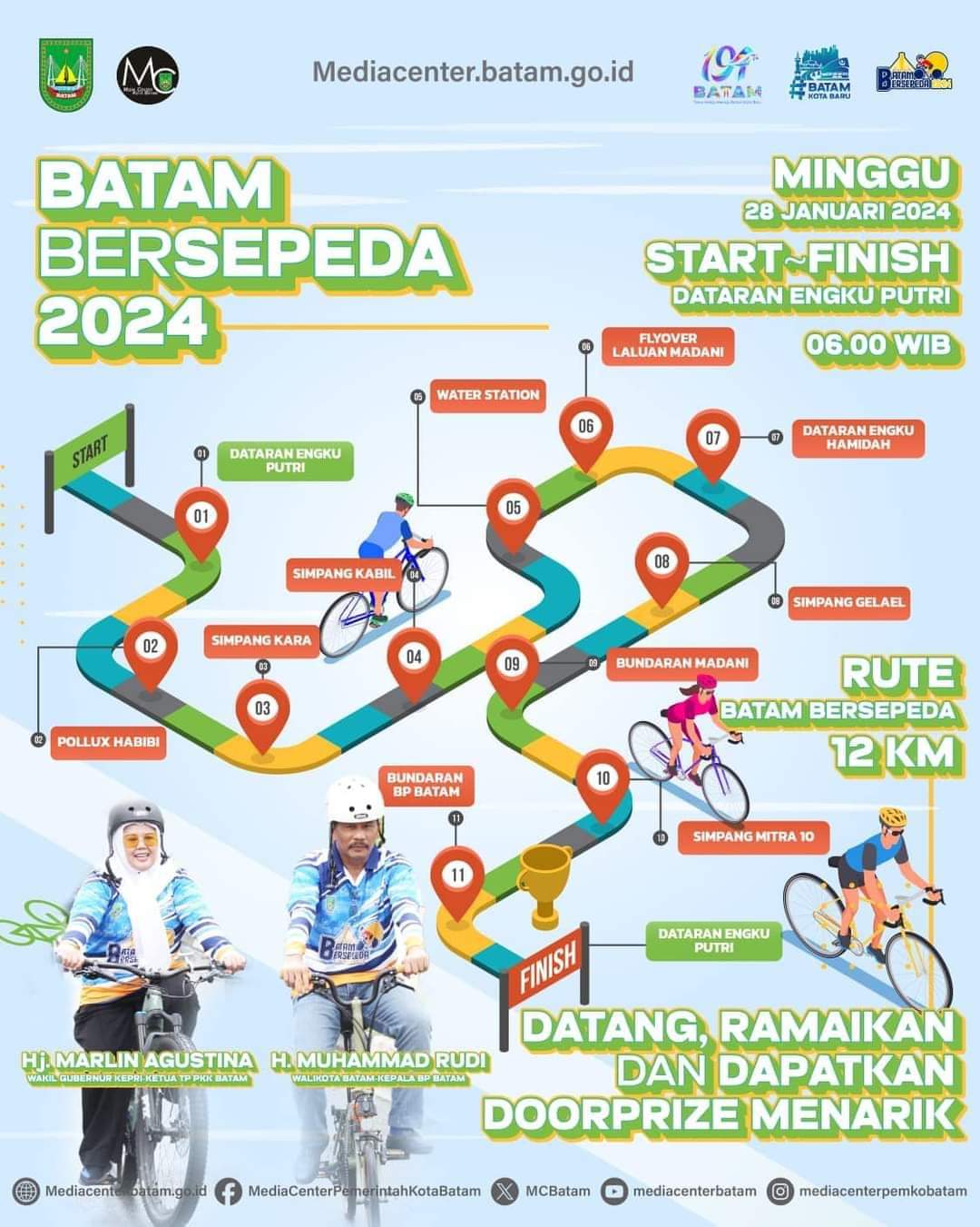 ENGKUPUTRI, KataBatam- Wali Kota Batam/Kepala Badan Pengusahaan Batam H Muhammad Rudi (HMR), bersama Wakil Gubernur Kepulauan Riau Hj Marlin Agustina, dijadwalkan ikut meramaikan “Batam Bersepeda”, pada Minggu, 28 Januari 2024 lusa.