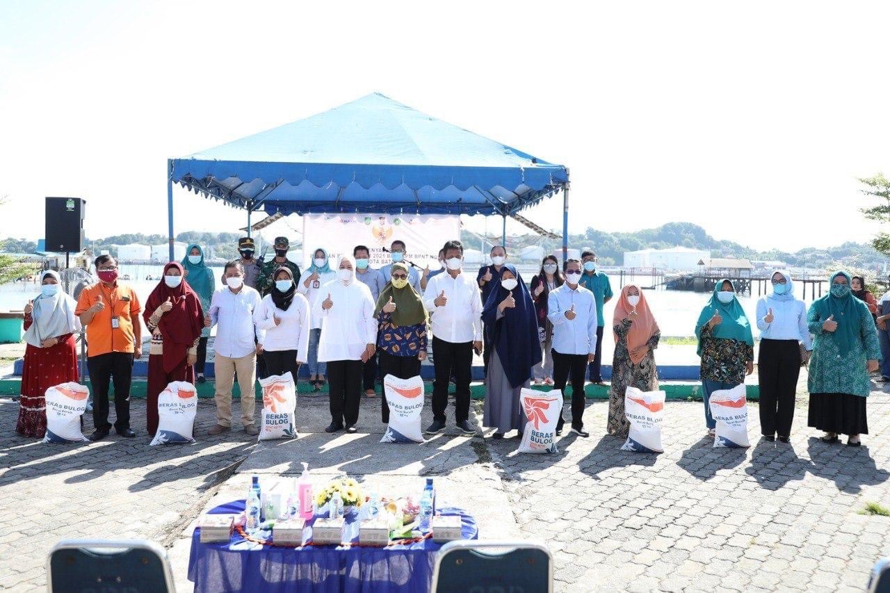 WAKIL GUBERNUR Kepulauan Riau Hj Marlin Agustina, kembali menghadiri penyaluran bantuan beras PPKM dari Kementerian Sosial untuk masyarakat. Kali ini, untuk masyarakat Kecamatan Belakangpadang, Kota Batam.