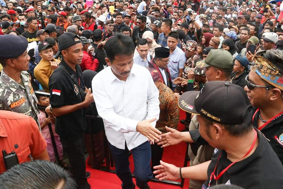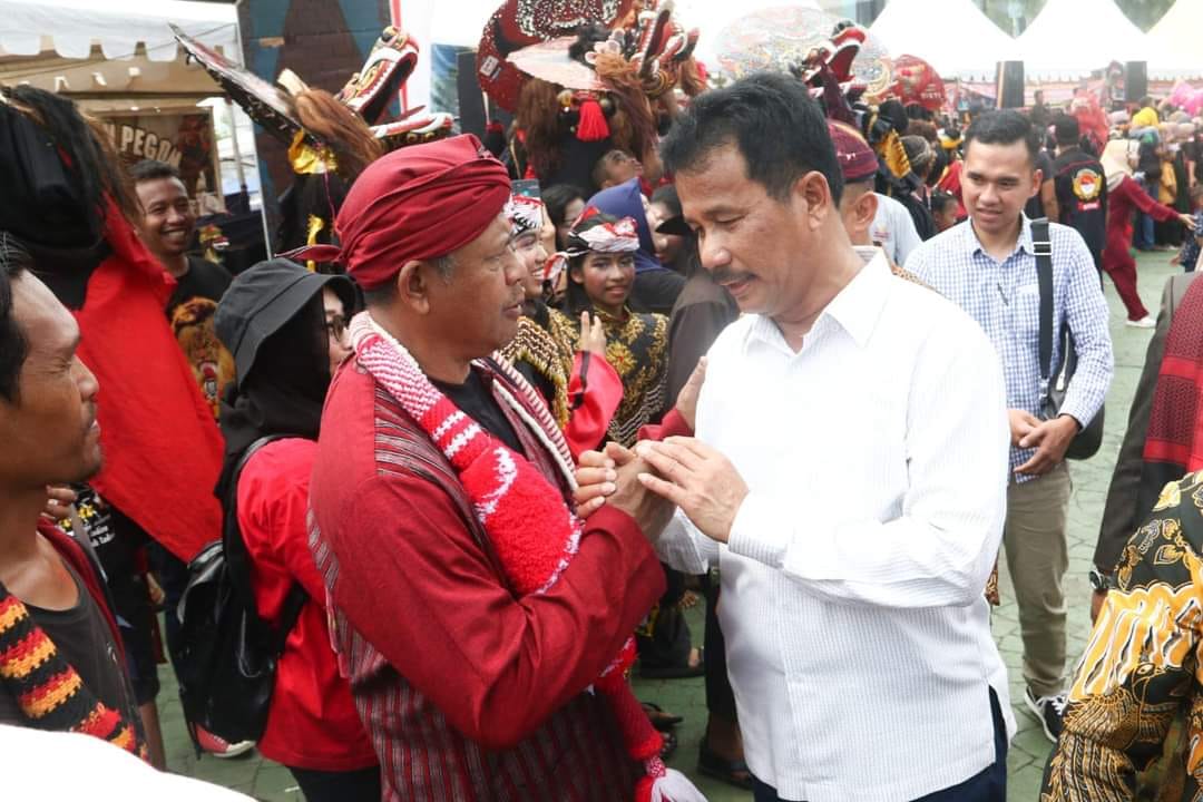 WALI KOTA Batam/Kepala Badan Pengusahaan Batam H Muhammad Rudi (HMR), disambut ribuan warga Batam asal Jawa, di acara Halal Bihalal Punggowo, yang dipusatkan di Dataran Engkuputri, Batamcentre, Minggu (28/5/2023).