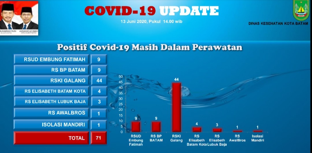 positif sembuh,” jelas Ketua Gugus Tugas Percepatan Penanggulangan Covid-19 Kota Batam yang juga Walikota Batam H Muhammad Rudi (HMR), Sabtu (13/6/2020) petang.