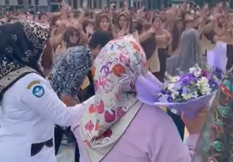 Melihat sambutan ini, Marlin yang ditemani Kepala Dinas Pemberdayaan Perempuan dan Perlindungan Anak, Kependudukan dan Keluarga Berencana Kota Batam Umiyati, Camat Batamkota Novi, serta segenap guru SMKN 7, langsung merespon.