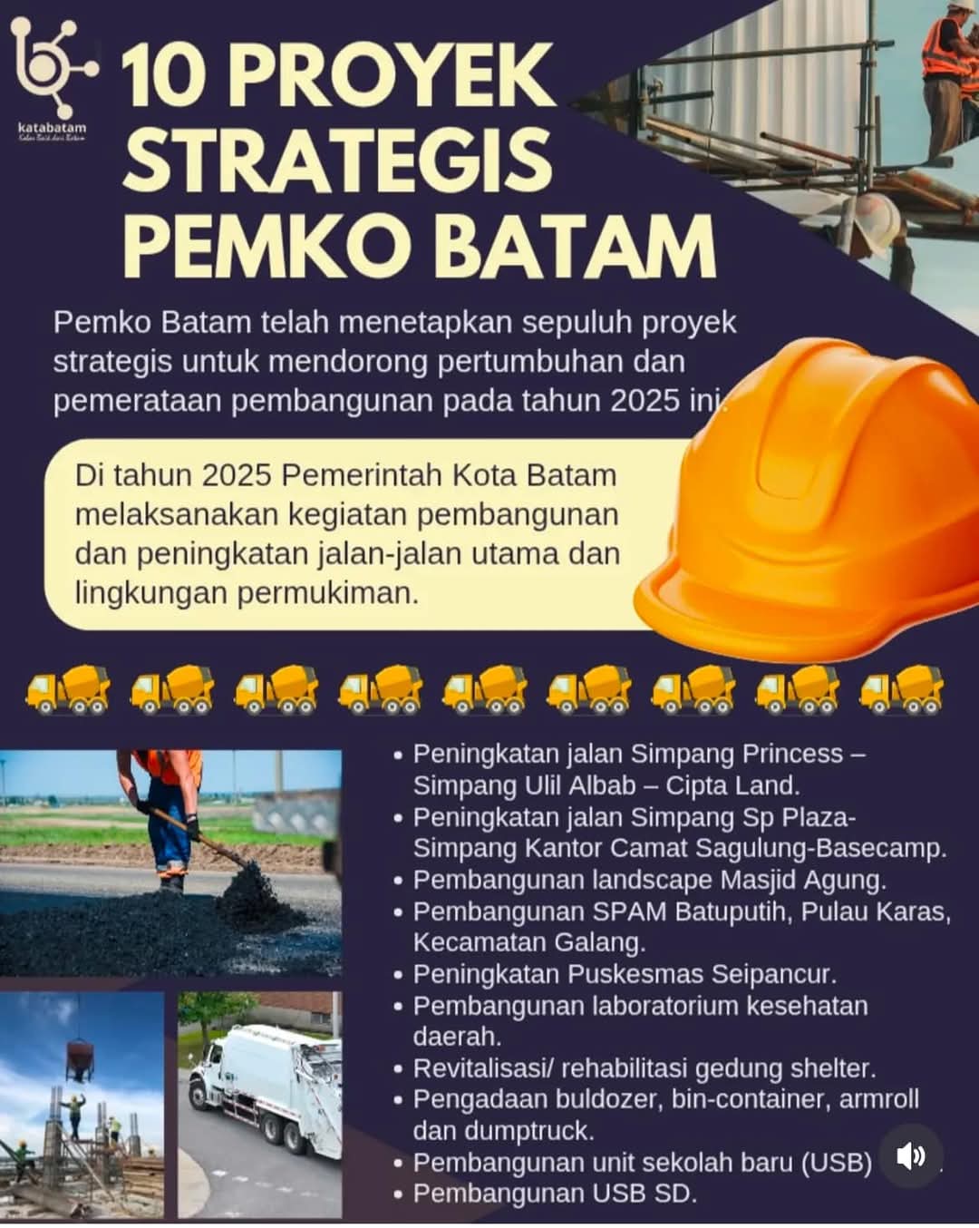 ENGKU PUTRI, KataBatam-Untuk mendorong pertumbuhan dan pemerataan pembangunan pada tahun 2025 ini, Pemerintah Kota (Pemko) Batam, telah menetapkan 10 proyek strategis.