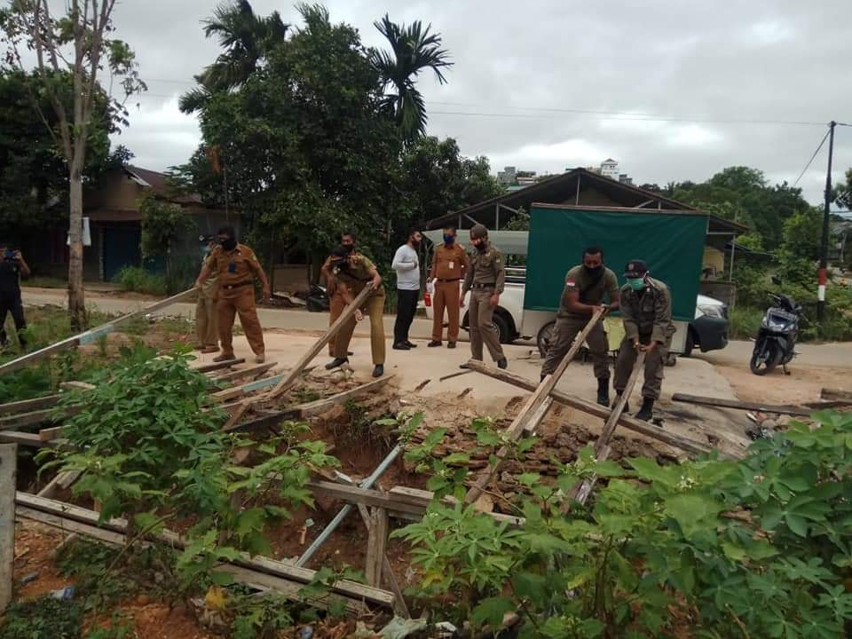 Melalui Kasi Trantib Kecamatan Beserta Lurah Tanjung Buntung, dan anggota Satpol PP BKO Kecamatan Bengkong, Senin (27/4/2020), Camat terjun melakukan penertiban.