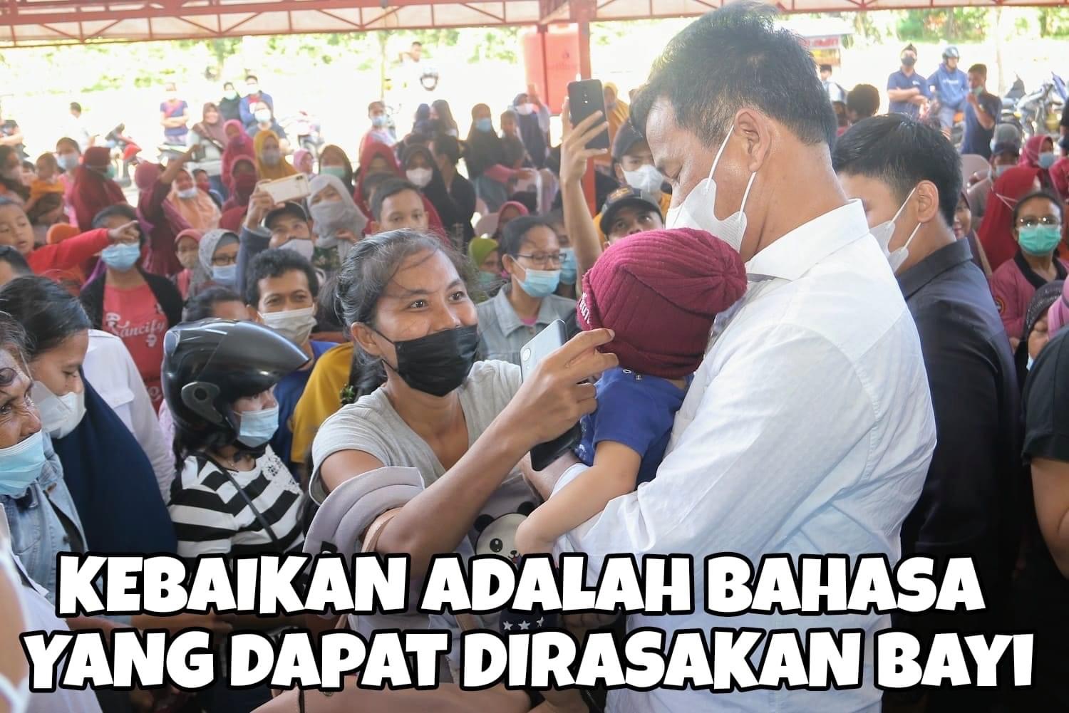 Tak disangka, sang bayi merespon hingga akhirnya HMR menggendongnya. Pemandangan ini spontan menarik perhatian masyarakat. Bahkan tak sedikit jua yang mengabadikan momen ini dengan kamera handphone-nya.