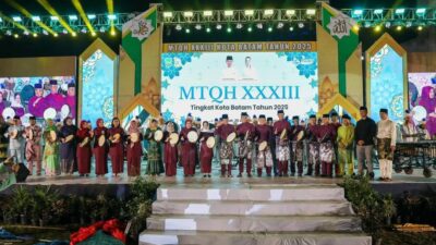 BATUAJI, KataBatam- Malam pembukaan Musabaqah Tilawatil Quran dan Hadis (MTQH) Ke-33 Tingkat Kota Batam, berlangsung meriah dan penuh khidmat di Masjid Sultan Mahmud Riayat Syah, Batuaji, Jumat (25/4/2025).