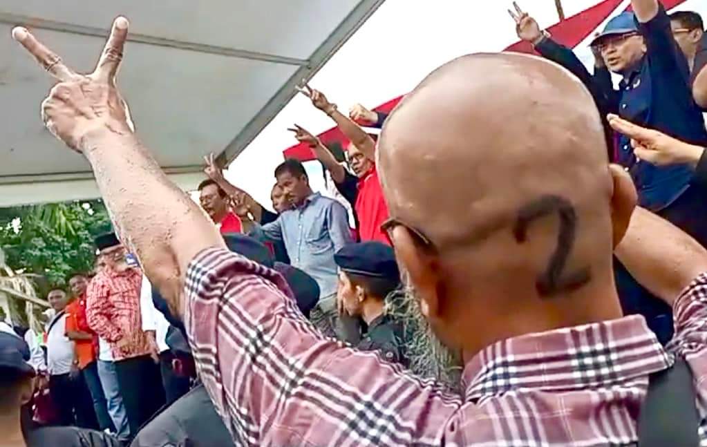 Saat itu ada pria yang memangkas rambut dan mengukir angka 2 di kepalanya, sebagai bentuk loyalitas mereka selaku pendukung pasangan Rudi- Rafiq.