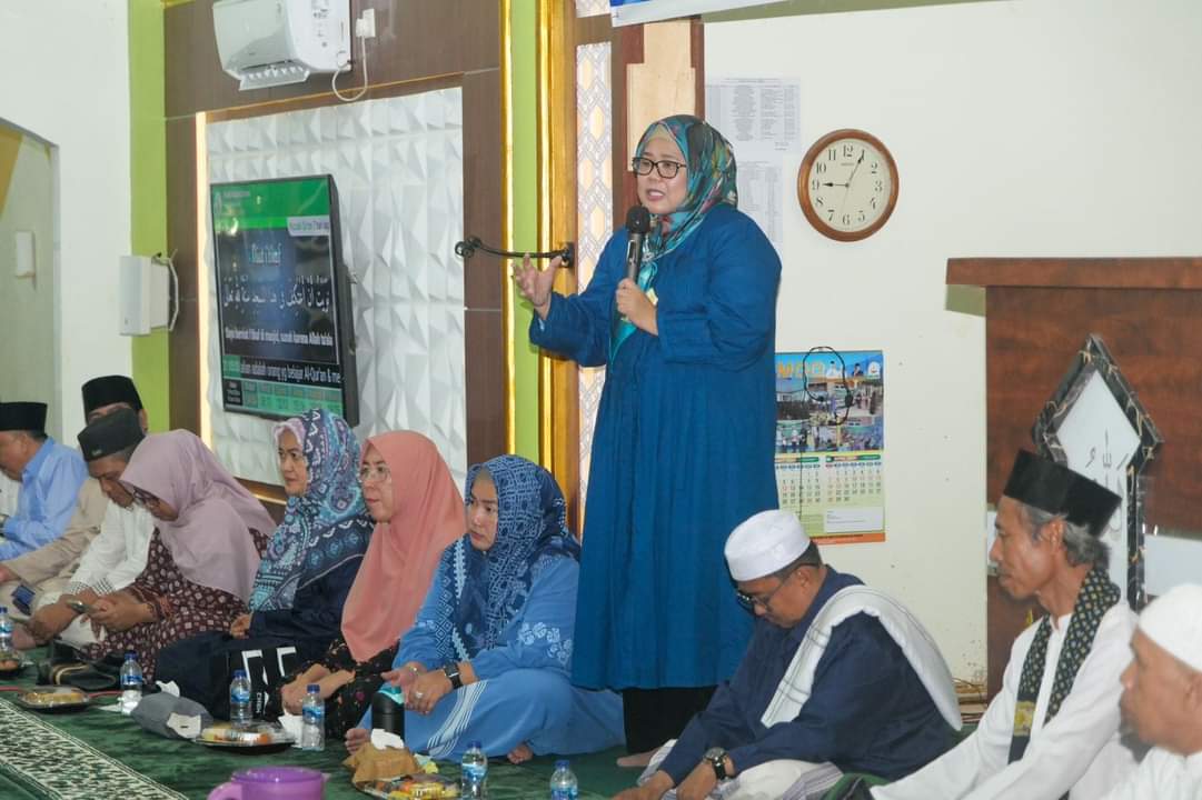 SAFARI KEBAIKAN: Wakil Gubernur Kepulauan Riau Hj Marlin Agustina, memberi sambutan safari Ramadan di Masjid Munjiyatul Ikhwan Sadai, Kavling Harapan Jaya, Kelurahan Sadai, Kecamatan Bengkong, Kota Batam, Selasa (19/3/2024) malam.