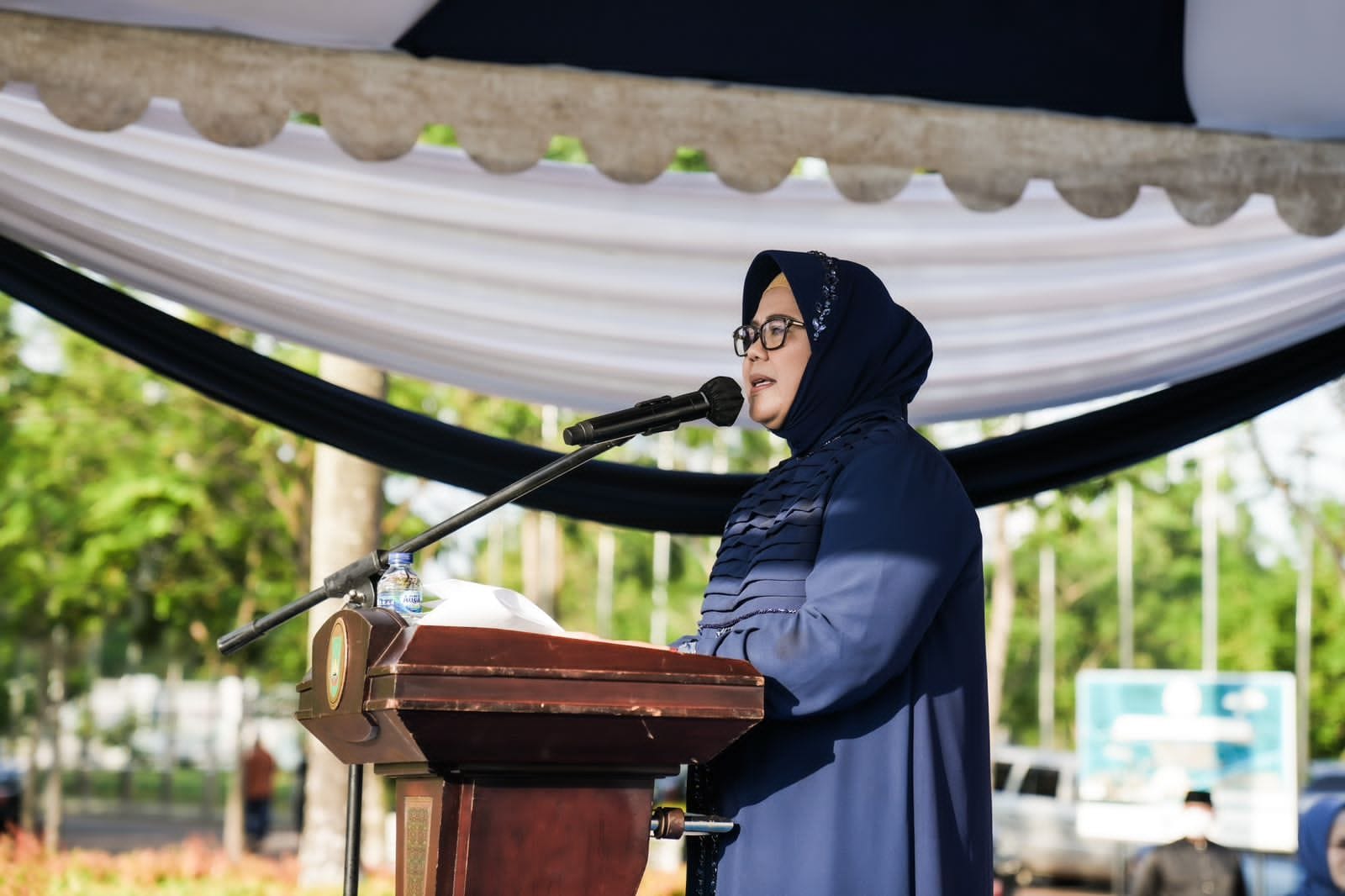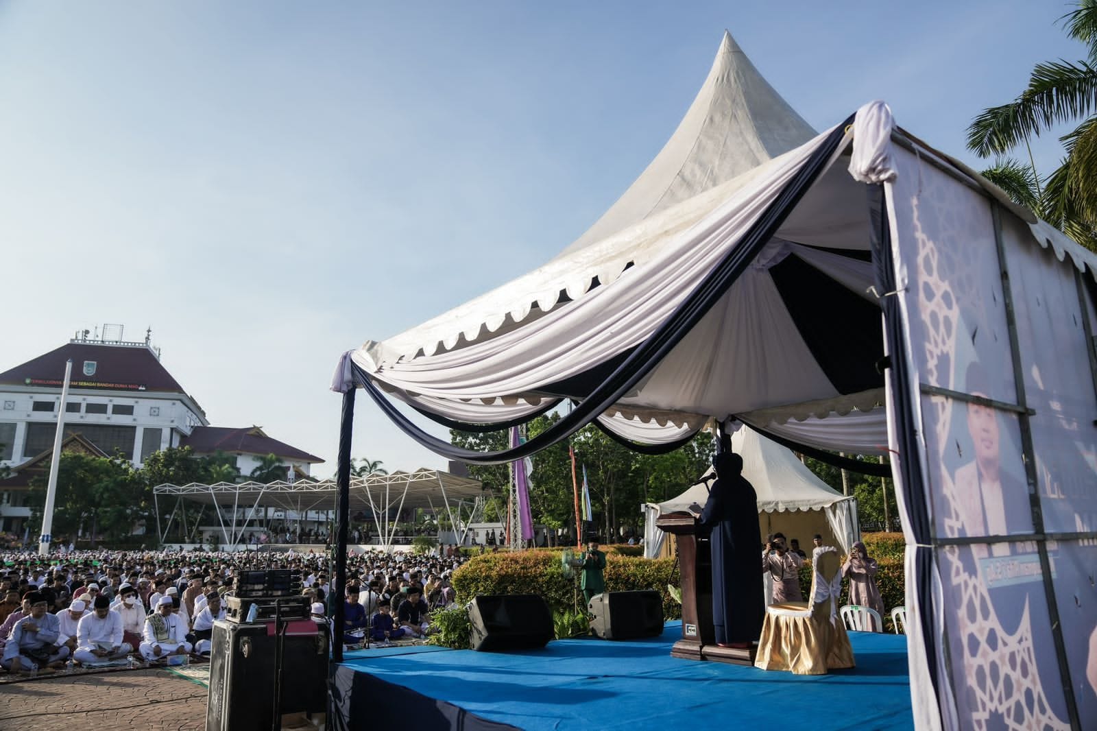 Ketua Tim Penggerak Pemberdayaan Kesejahteraan Keluarga (TP-PKK) Kota Batam ini menunaikan salat Ied di Dataran Engkuputri, bersama ribuan masyarakat Batam. Sejak pagi, masyarakat sudah berbondong-bondong menuju ke pusat kota Batam ini.