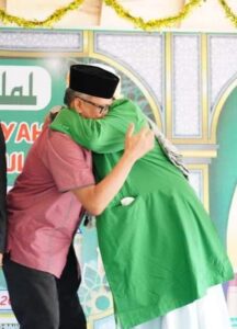 Tampak dalam kesempatan tersebut, Jefridin merendahkan diri, bahkan merangkul kepada para ulama tersebut.
