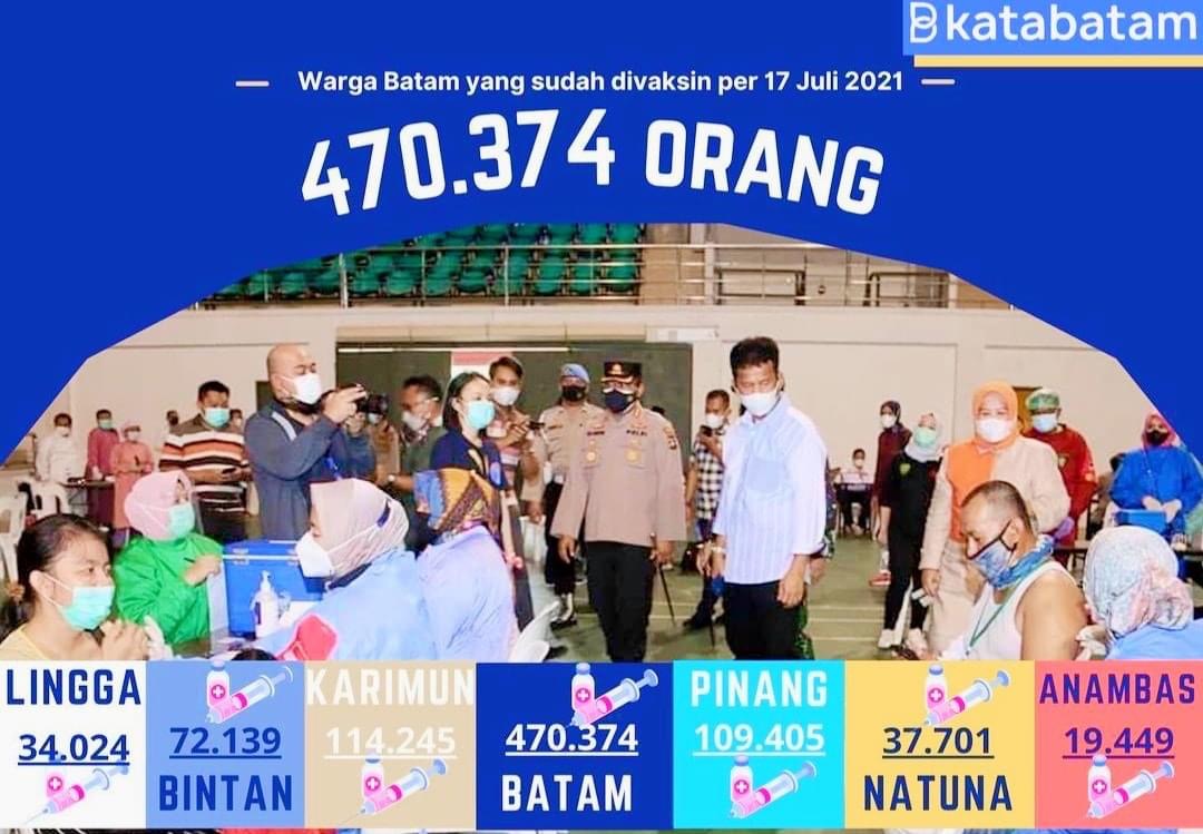 Data vaksinasi di Kepri per 17 Juli 2021, warga berusia 18 tahun ke atas sebanyak 857.337 orang sudah mendapatkan suntikan vaksin dosis pertama.