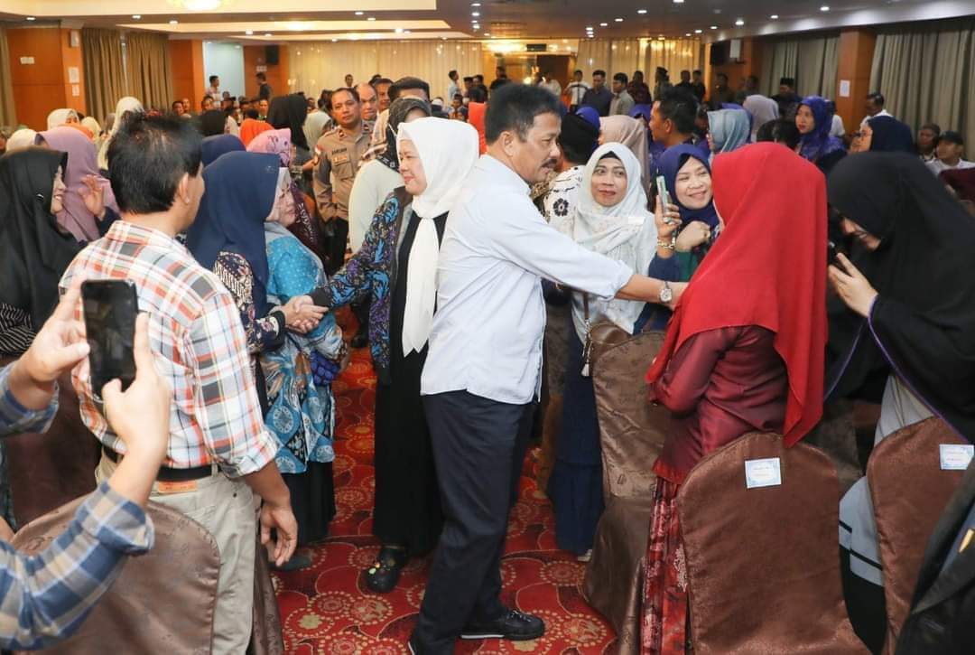 MAJUKAN BENGKONG: Wali Kota Batam H Muhammad Rudi (HMR), bersama Wakil Gubernur Kepulauan Riau Hj Marlin Agustina, bersilaturahmi dengan ketua RT/RW dan tokoh masyarakat, sekaligus menyerahkan insentif Triwulan I (Januari-Maret) 2024, untuk ketua RT/RW se-Kecamatan Bengkong, di Golden View Hotel, Bengkonglaut, Selasa (5/3/2024).