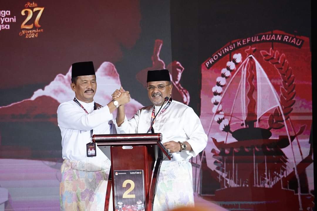 SUKAJADI, KataBatam- Calon Gubernur dan Wakil Gubernur Kepulauan Riau (Kepri) H Muhammad Rudi (HMR), dan H Aunur Rafiq, mantap melangkah ke “panggung” debat calon Gubernur Kepri di Ballroom Radisson Hotel Batam, Sabtu (2/11/2024)