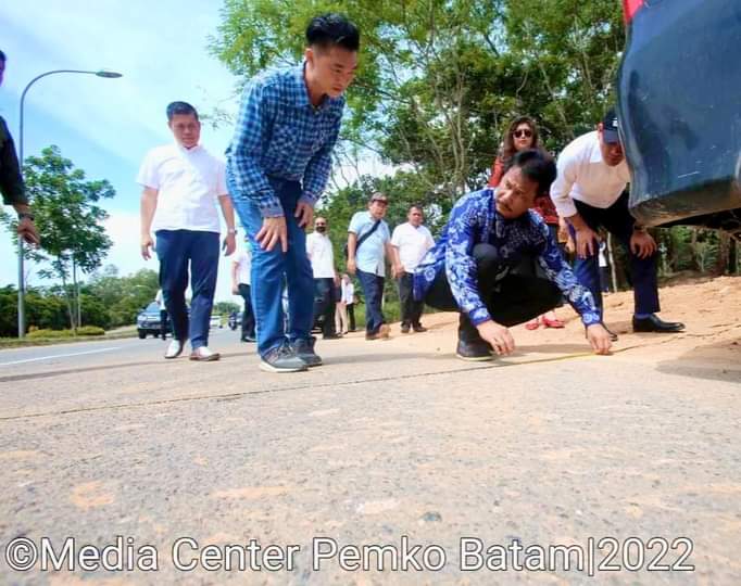 BATAM, KataBatam– Wali Kota Batam/Kepala Badan Pengusahaan Batam H Muhammad Rudi (HMR), meninjau langsung pengukuran lokasi penanaman pohon jati emas. Bahkan Rudi ikut serta mengukur bersama petugas.