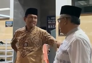 Usai Tarawih Jefridin dan Asman pun masih tampak berbincang akrab, hingga kemudian ke luar masjid.