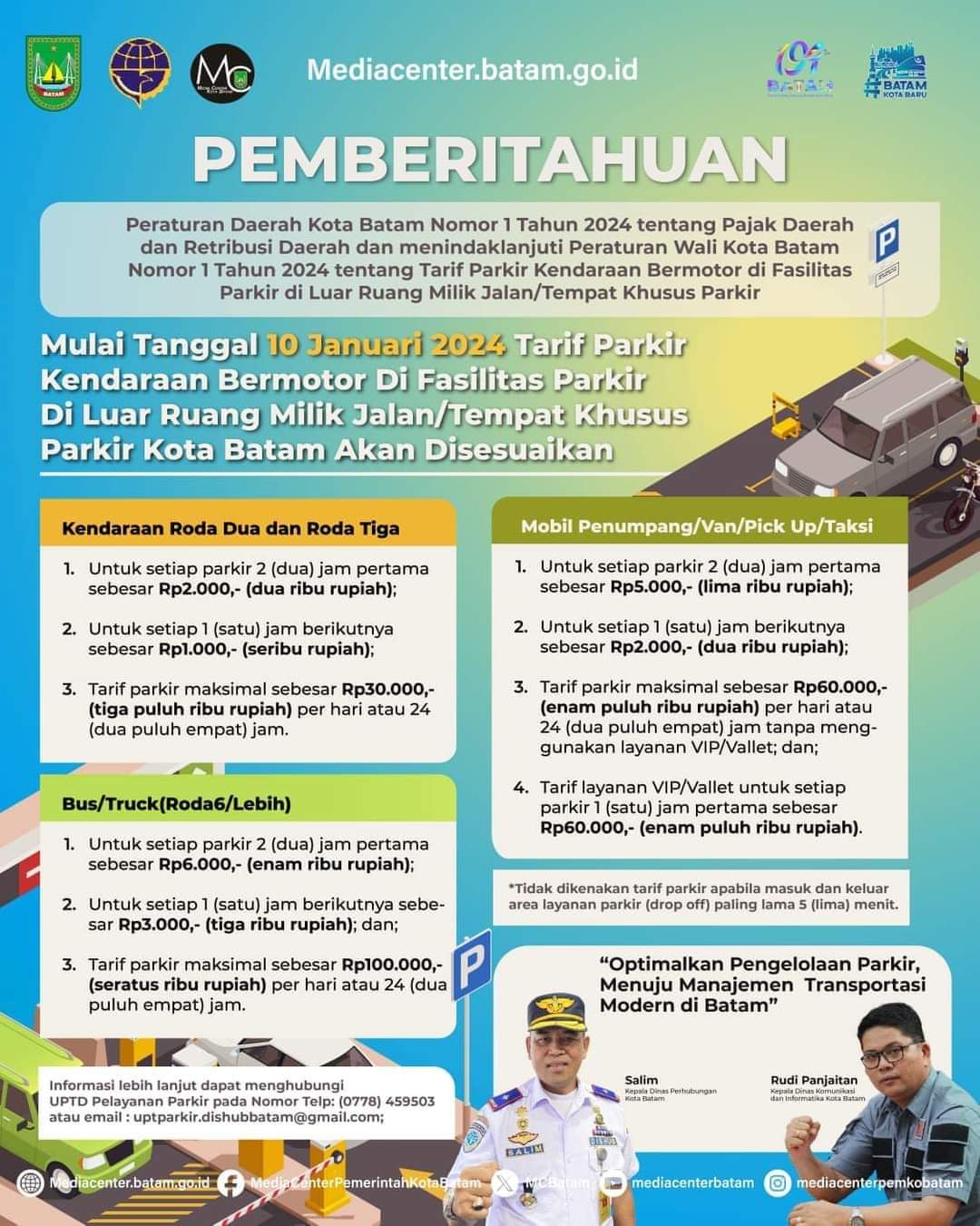 βBeberapa saran konstruktif sudah dijalankan. Saran dan masukan yang disampaikan sangat solutif demi pengelolaan parkir lebih baik lagi di Batam,β ujar Kepala Dishub Batam Salim, Sabtu (27/1/2024).