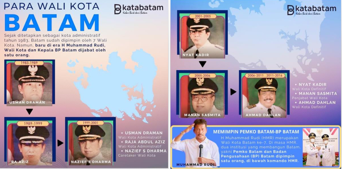 Namun di era modern, Batam baru memiliki seorang Wali Kota, di masa pemerintahan kota administratif, tahun 1983.