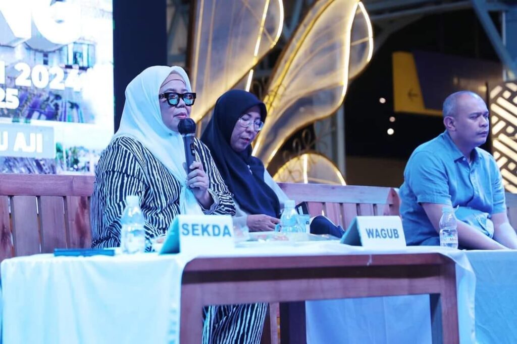 WAKIL Gubernur Kepulauan Riau Hj Marlin Agustina, didampingi Kepala Bapelitbangda Kota Batam Dahlina Nopilawati, memberi masukan di sela menghadiri Musrenbang Tingkat Kelurahan Kibing, Kecamatan Batuaji, di Pakuba Buana Central Park, Selasa (30/1/2024) malam.