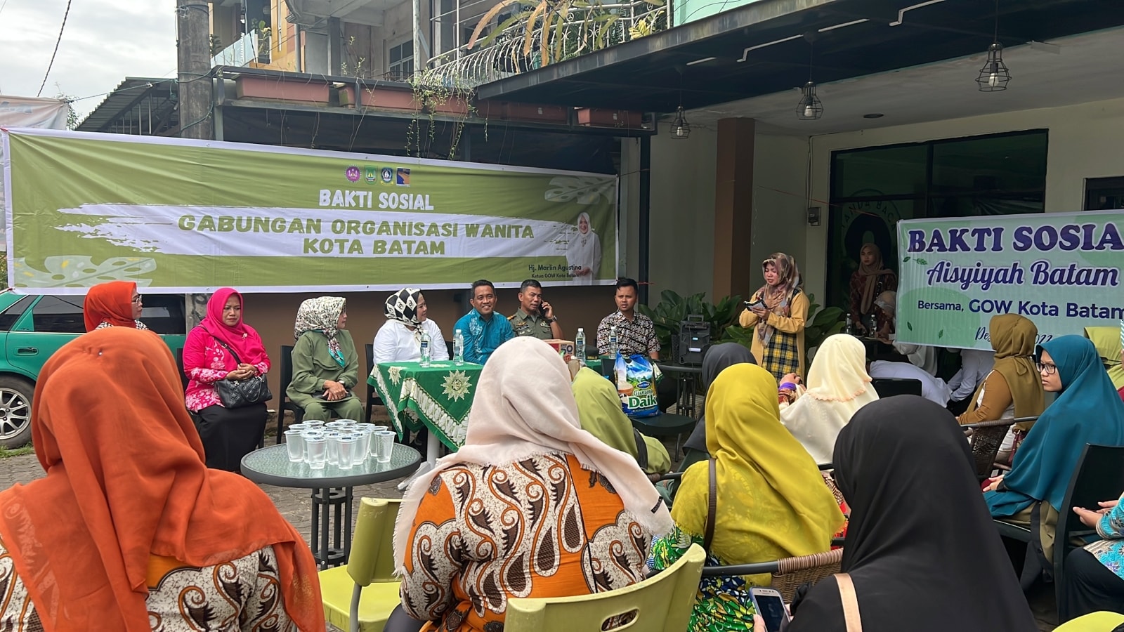 Kemudian, Wagub Marlin dalam kapasitas sebagai Ketua Gabungan Organisasi Wanita (GOW) Kota Batam, melakukan penyerahan bahan pokok/ bakti sosial kepada beberapa organisasi di tujuh titik. Di antaranya: