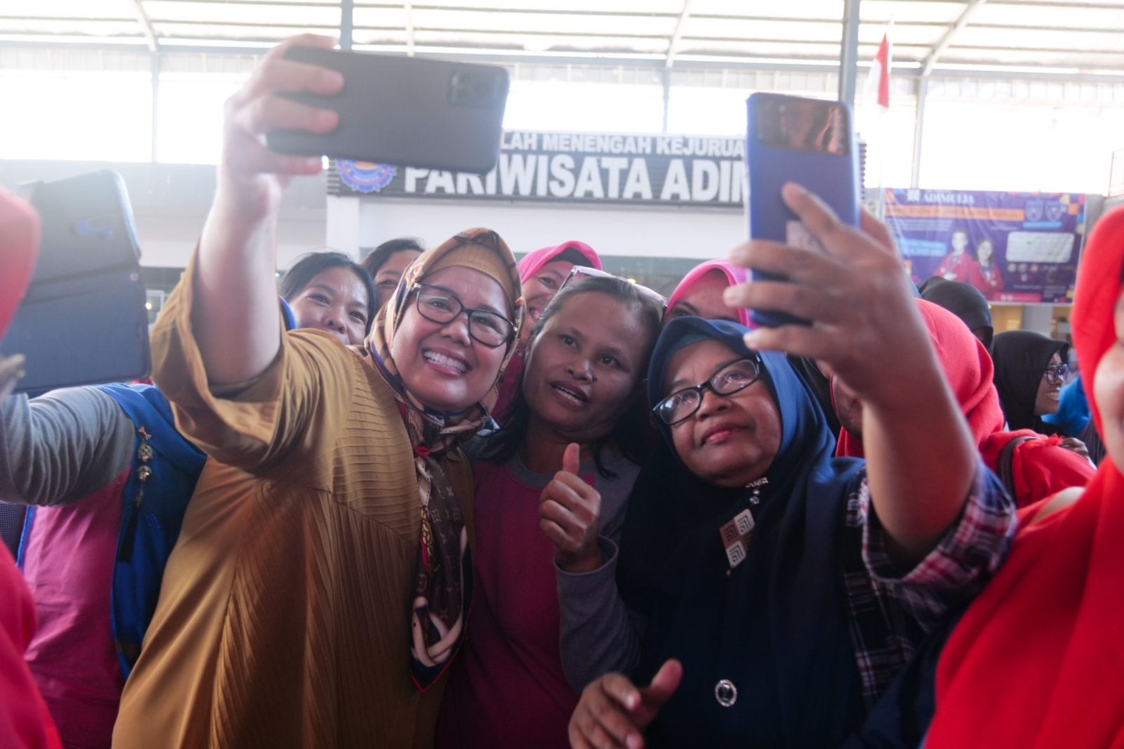 BUNDA Marlin, melayani ajakan selfie di sela membuka Porseni Himpaudi, IGTKI, PKG dan IGRA, di MB2, Batamcentre, Rabu (10/5/2023).