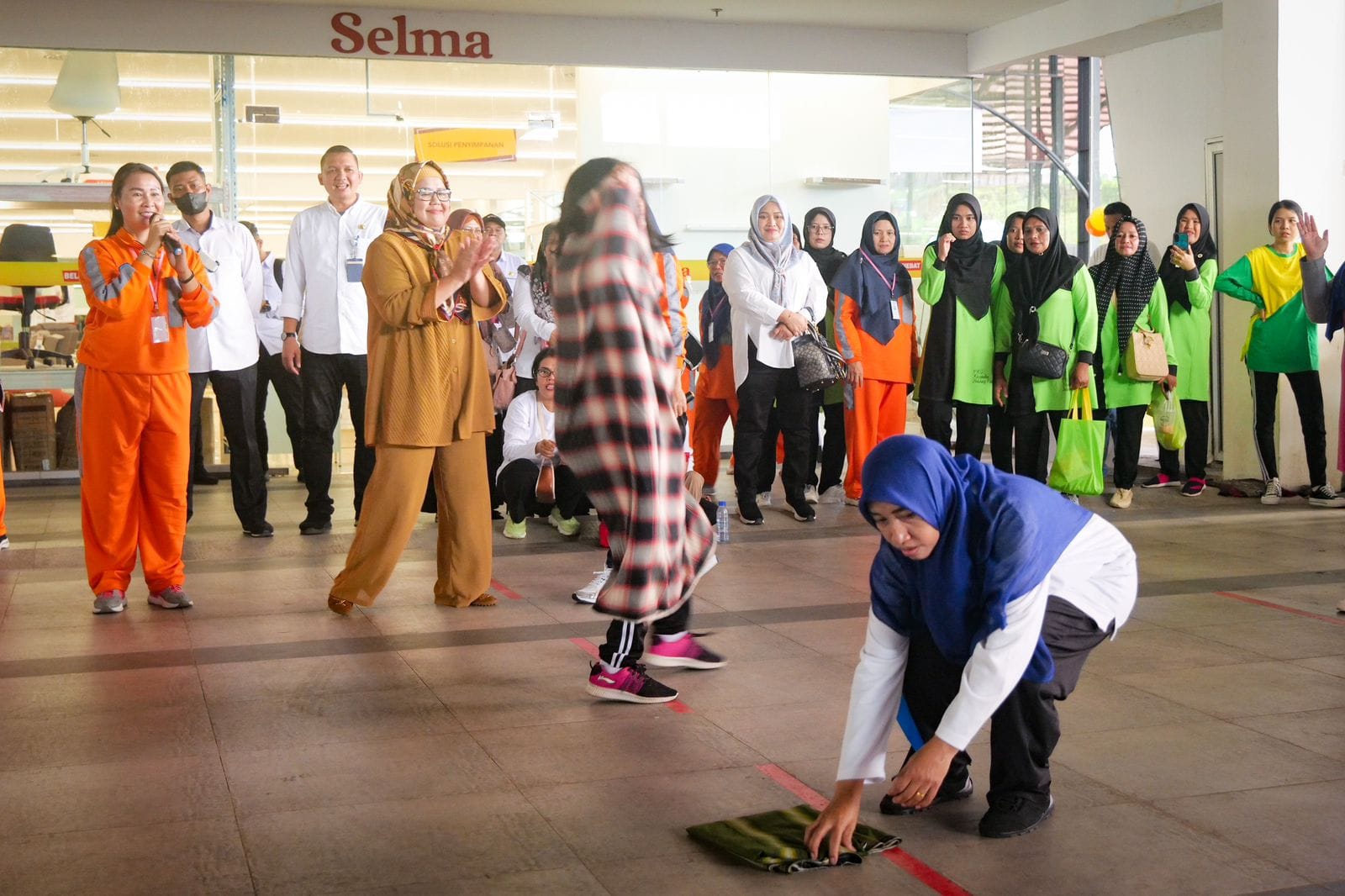 BUNDA Marlin, menyemangati guru yang ikut lomba balap sarung Porseni Himpaudi, IGTKI, PKG dan IGRA, di MB2, Batamcentre, Rabu (10/5/2023).