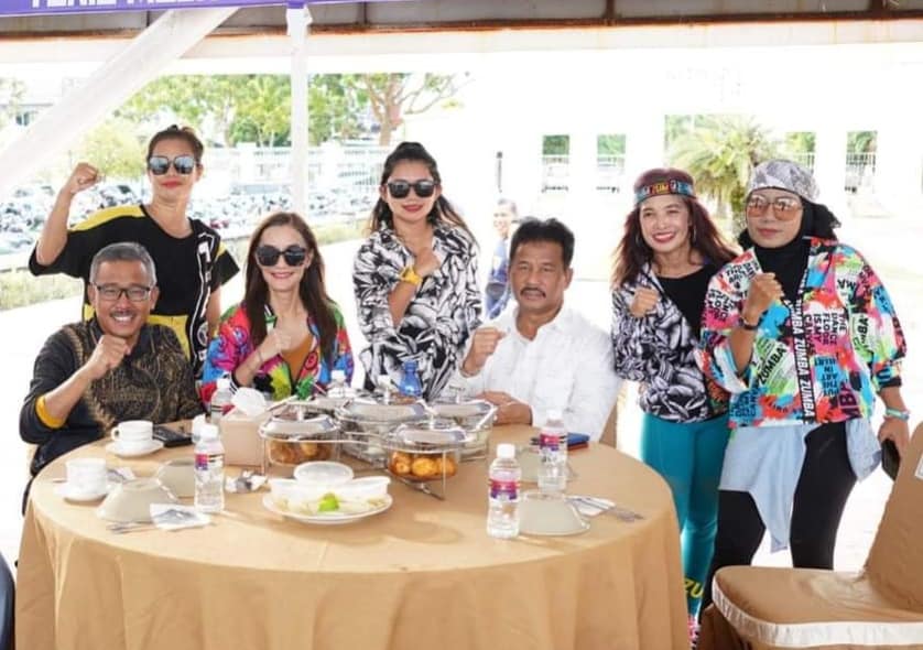Tak hanya senam, bahkan para pejabat teras ini ikut berjoget bersama pegawai, diiringi live musik yang setia menghibur sepanjang acara.