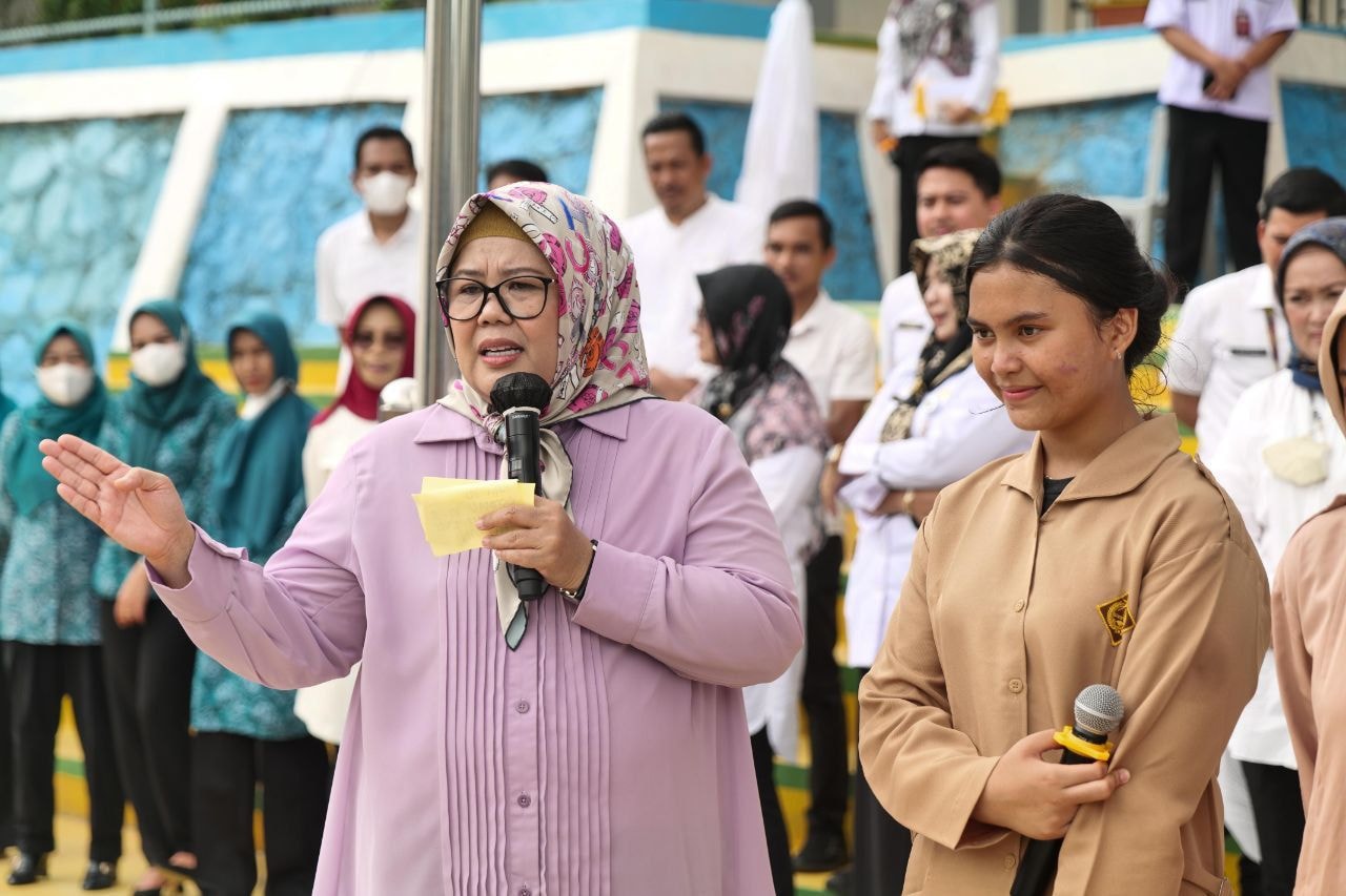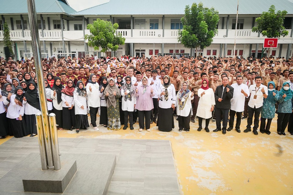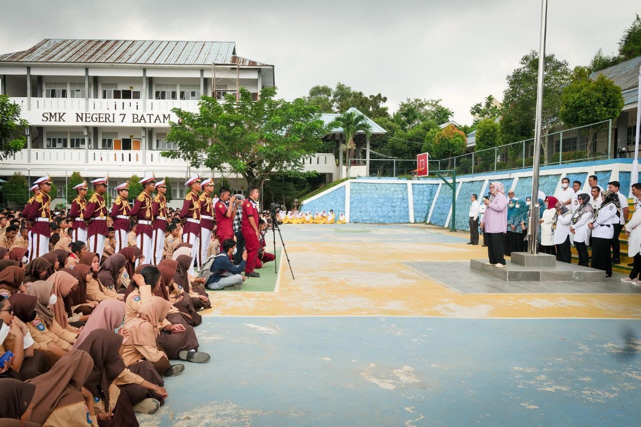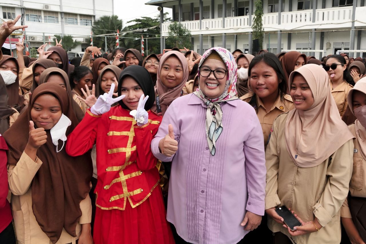 BELIAN, KataBatam– Kedatangan Wakil Gubernur Kepulauan Riau Hj Marlin Agustina, di SMK Negeri 7 Batam, disambut gegap gempita lebih seribu pelajar. Rabu (28/9/2022) siang itu, benar-benar meriah.