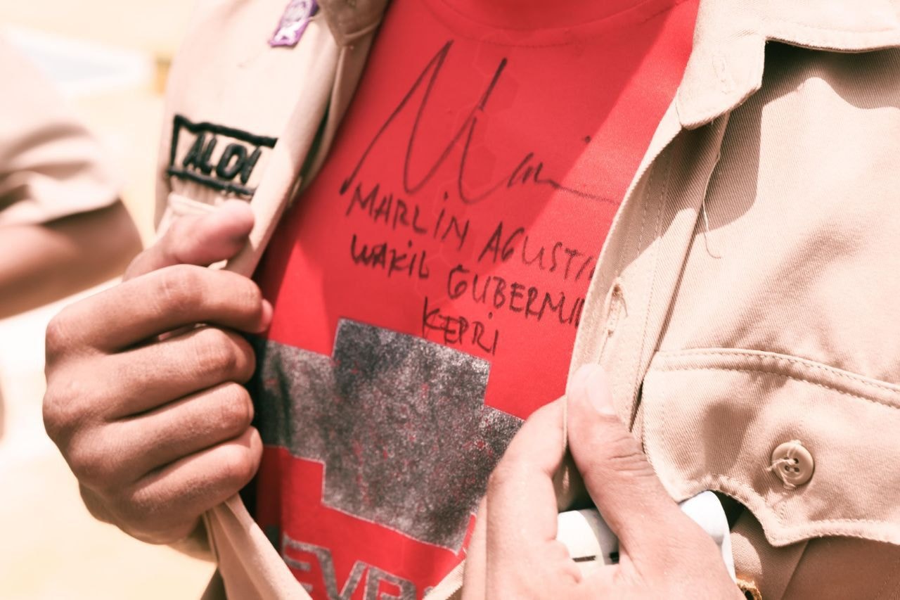 “Kami mencinta mu selamanya, Ibu Wagub Kepri. Ku di sini mendukungmu,” demikian di antara lirik-lirik yang diteriakan.