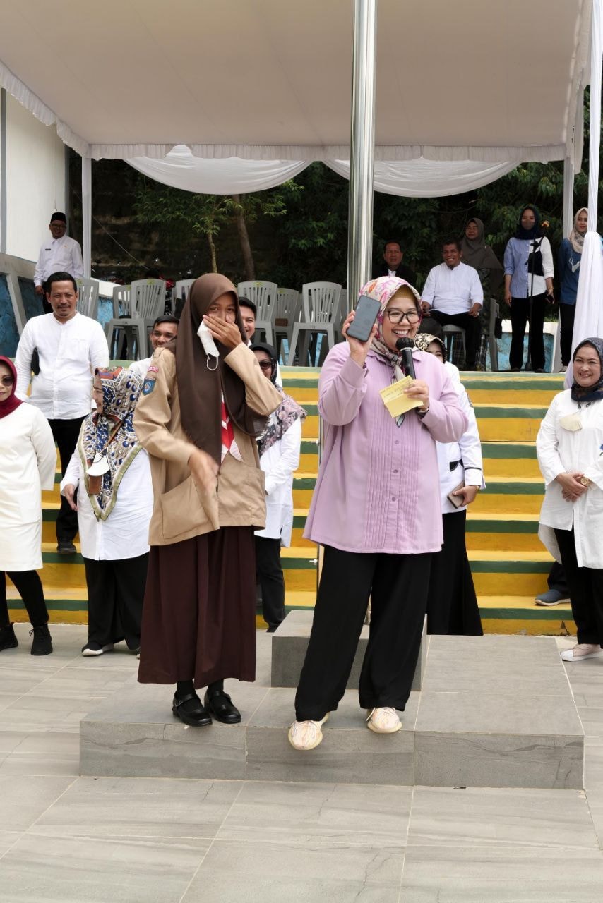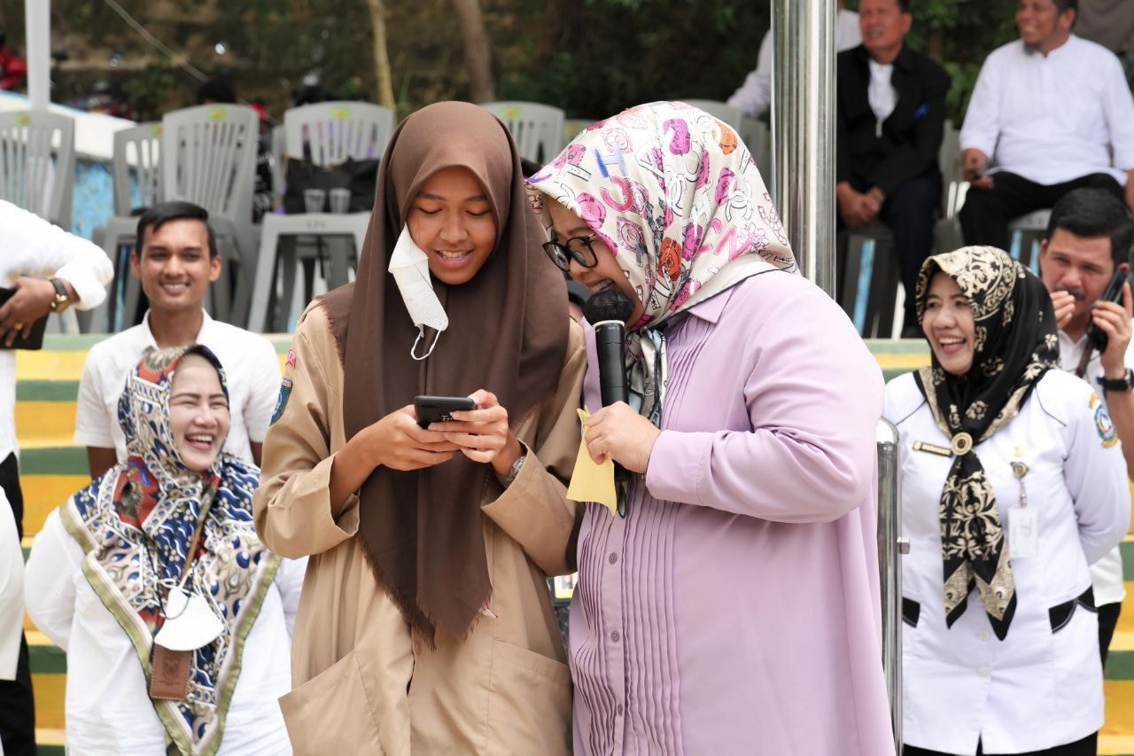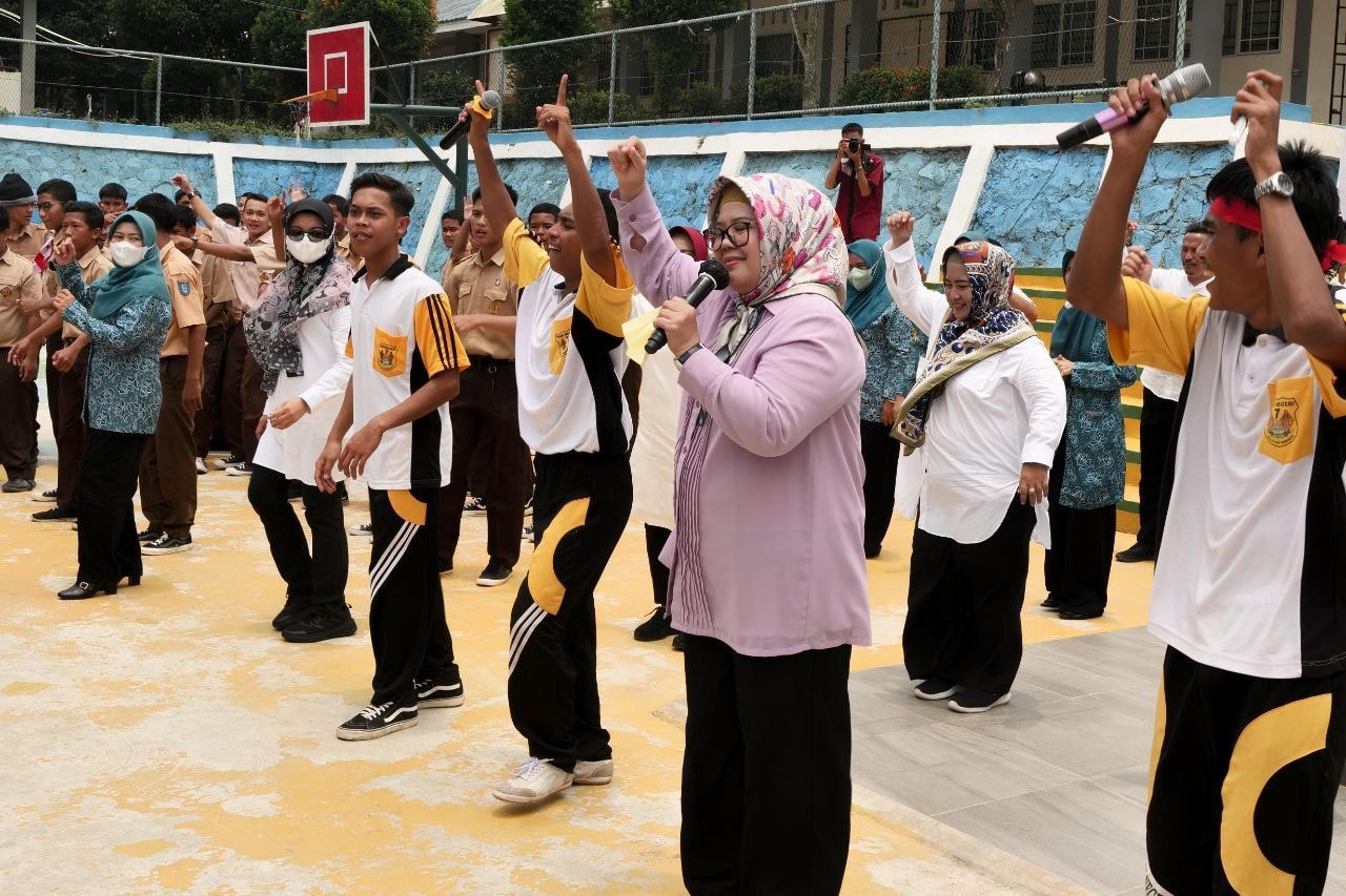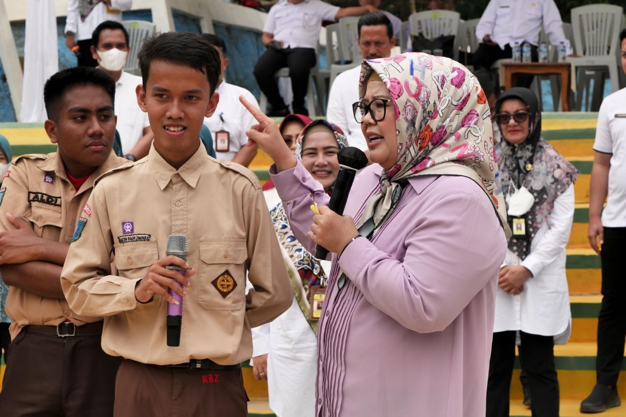 Ketika diberi kesempatan memberikan sambutan, Wagub Marlin lebih memilih untuk berinteraksi langsung dengan para pelajar.