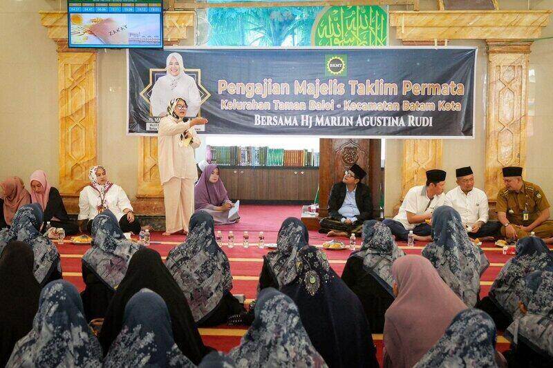 TAMANBALOI, KataBatam – Wakil Gubernur Kepulauan Riau Hj Marlin Agustina, menghadiri pengajian Permata (Persatuan Majelis Taklim/ tingkat kelurahan, red), di Masjid Nurul Djannah, Edenpark Centre, Kelurahan Tamanbaloi, Kecamatan Batamkota, Kota Batam, Senin (21/8/2023) siang.