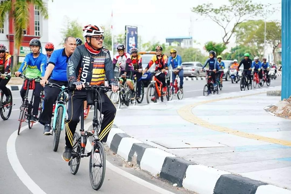 Dimulai Sabtu (29/10/2022) pagi, Sekda Jefridin memanaskan adrenalin, di acara Gowes dan Senam Bersama, dalam Rangka Memperingati Hari Perhubungan Nasional Tahun 2022. Dalam acara yang bertempat di Kantor Dinas Perhubungan Kota Batam ini, Jefridin tampak semangat memacu sepeda lipatnya paling depan.